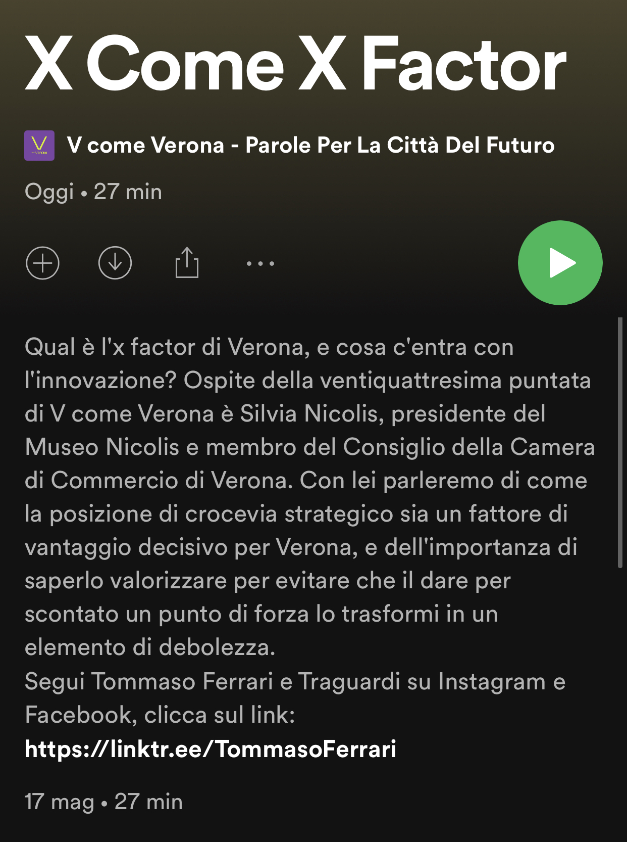 Silvia Nicolis ospite del Podcast di Spotify "V come Verona - Parole Per la Città del Futuro" a cura di Tommaso Ferrari e Traguardi.