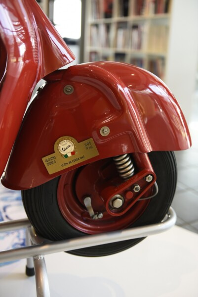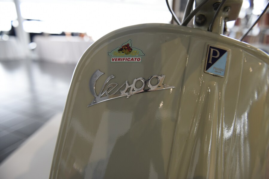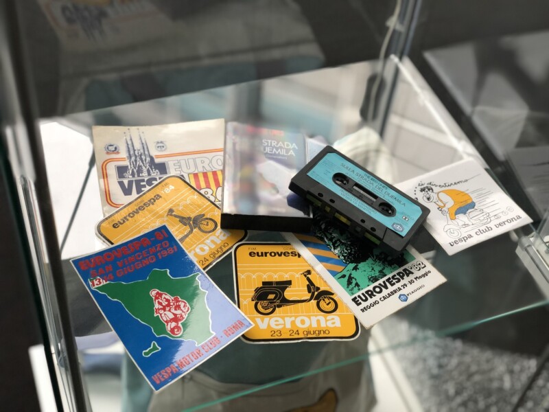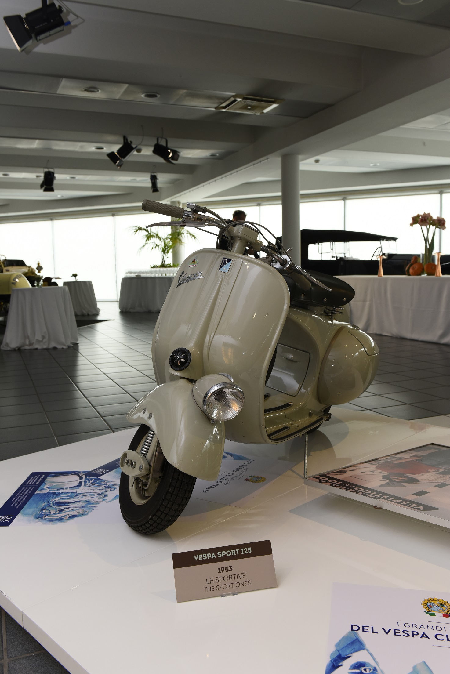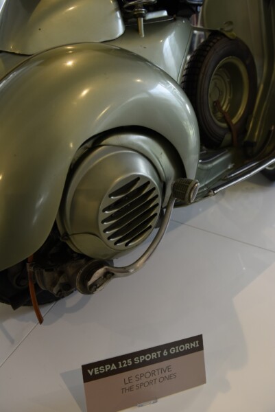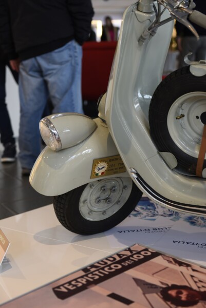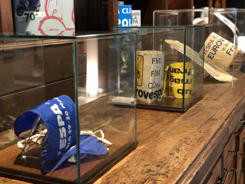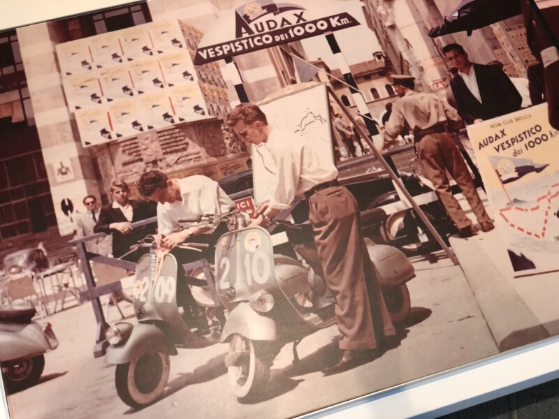 Naturalmente, i complementi fondamentali che aggregano questa storia inarrivabile negli anni in cui si è manifestata, saranno gli scooter Vespa che hanno avuto maggior rilievo nella società e nel cuore degli appassionati: la Vespa 98 del 1946 l’inizio della fantastica avventura che ricorda Enrico Piaggio e Corradino D’Ascanio, le Sport “6 giorni” del 1952 e del 1953 delle memorabili imprese sportive, la 125 del 1952 modello interprete del film di William Wyler “Vacanze Romane” con Audrey Hepburn e Gregory Peck, e tanti altri memorabili pezzi che rappresentano un percorso entusiasmante sino agli anni ’70. Vale la pena di ricordare l’accostamento di questo magico veicolo al mondo femminile negli anni ‘50 con l’Audax internazionale femminile, l’epico raduno di Milano e il raduno internazionale ”Ragazze in Vespa”.