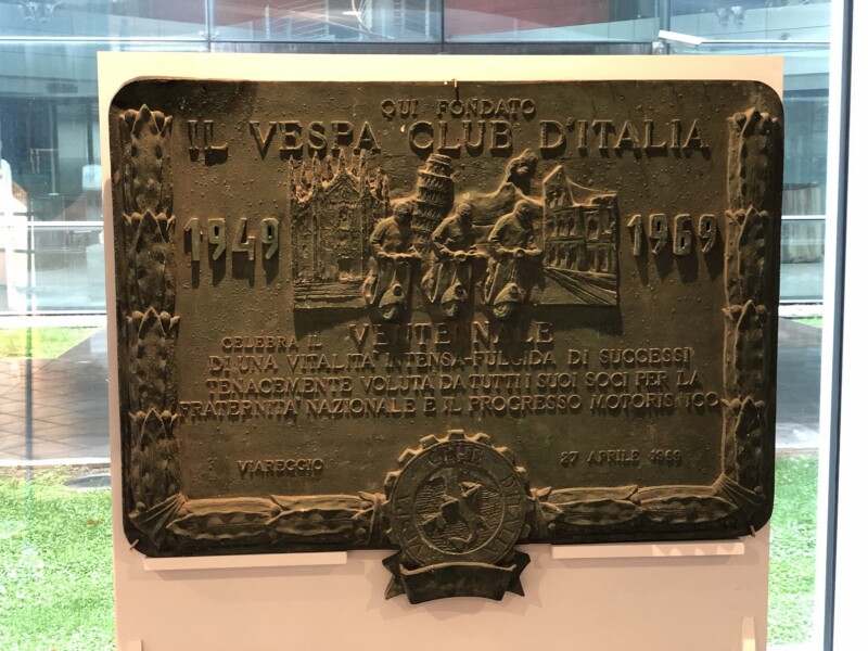 Targa in bronzo del Ventennale Vespa Club d’Italia 1949-1969 dell’Hotel Belmare.