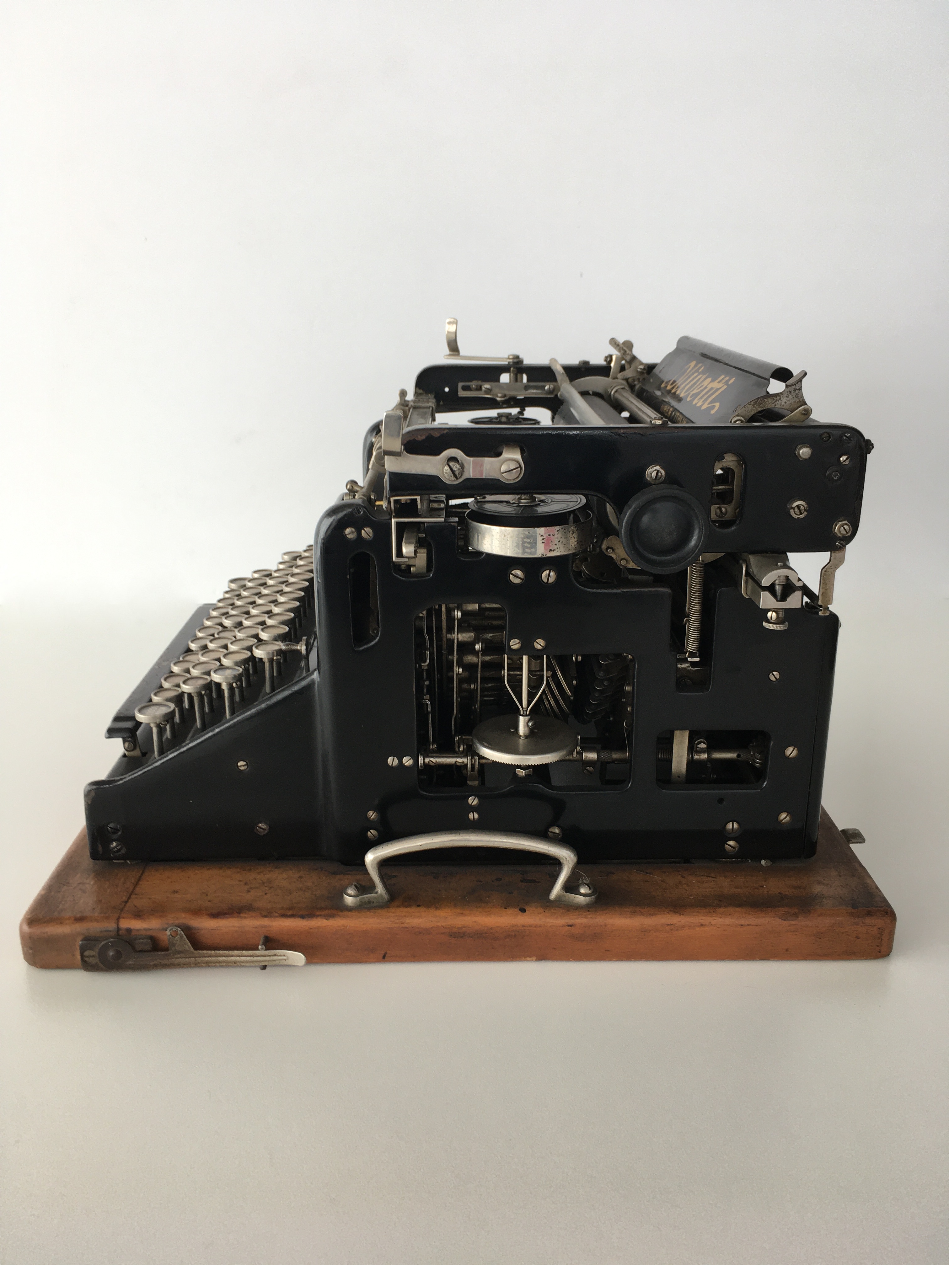 Prodotta in circa seimila esemplari tra il 1911 e il 1920, la M1 rappresenta non solo un traguardo industriale ma anche un successo comunicativo. Il suo lancio pubblicitario fu affidato a un manifesto firmato da Teodoro Wolf Ferrari, in cui la macchina per scrivere campeggia in primo piano sotto lo sguardo severo di Dante Alighieri, ritratto mentre la indica con decisione: un’immagine potente che unisce la modernità della tecnologia alla tradizione della cultura italiana.