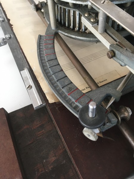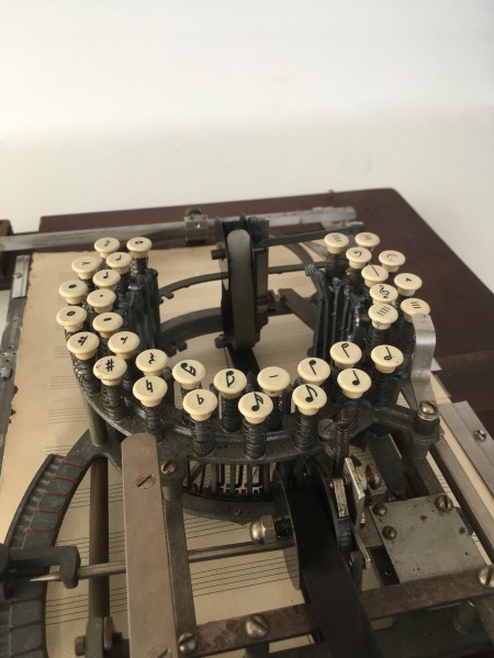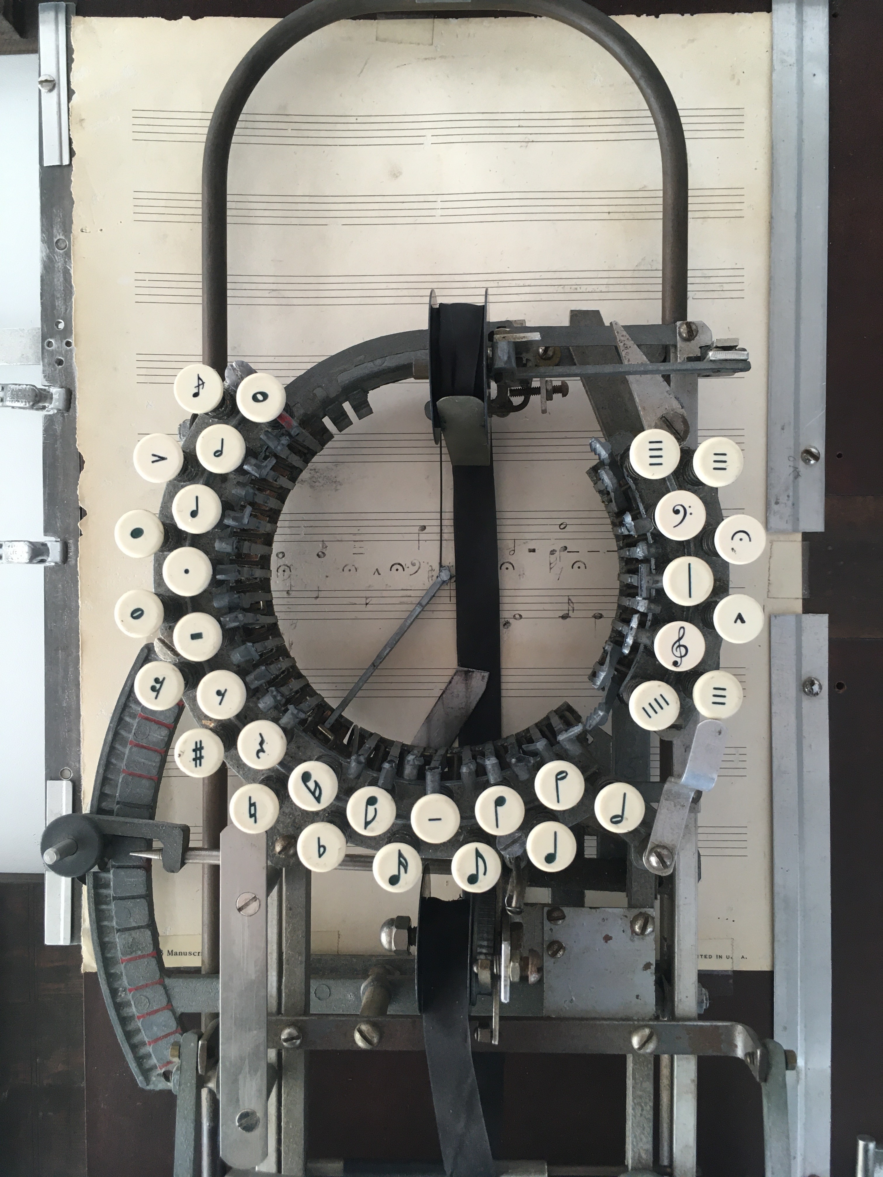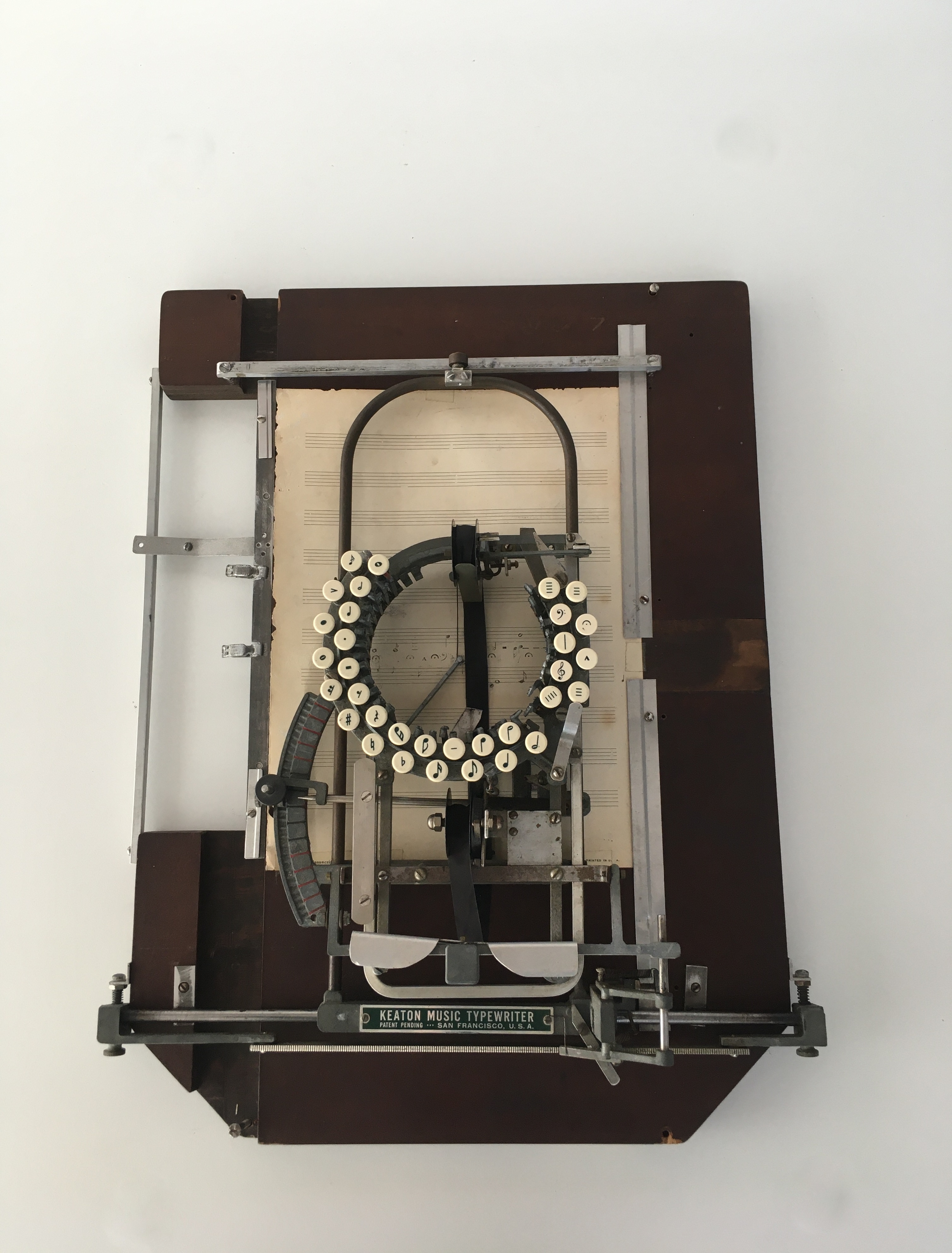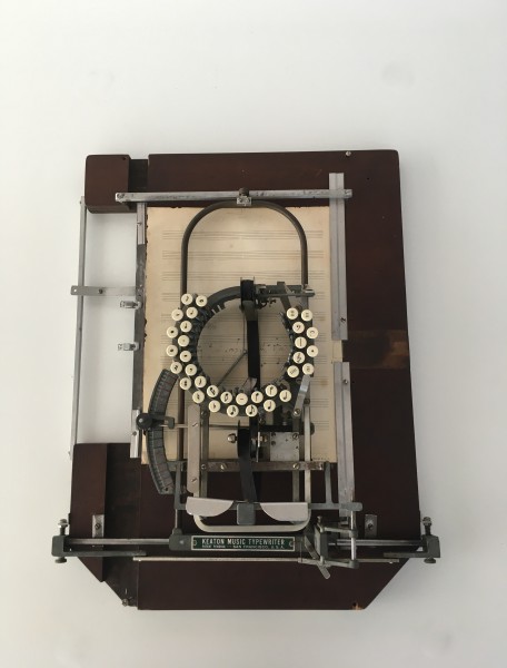 La prima Keaton Music Typewriter a 14 tasti venne brevettata nel 1936 da Robert H. Keaton di San Francisco. Successivamente, nel 1953 venne brevettata la versione a 33 tasti, che includeva alcuni miglioramenti. Il prezzo di vendita era di 225 dollari. Le note, in questa macchina per scrivere venivano stampate sul foglio, che si trovava sotto il meccanismo di battitura. Keaton Music Typewriter rese più semplice produrre spartiti in più copie per editori, educatori e musicisti. Al contrario, i compositori preferivano scrivere la propria musica a mano.