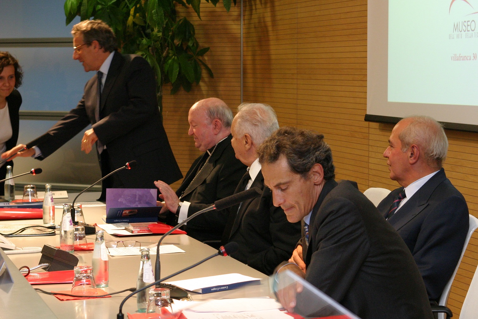 In piena aderenza allo spirito del Premio, il riconoscimento tributato ad Alessandro Fedrigoni è una pubblica testimonianza dei valori che questo imprenditore ha saputo trasferire nella sua attività: visione, innovazione, etica, responsabilità personale e professionale verso il territorio e la comunità, valorizzazione dell’ uomo e dei suoi “talenti”. Si aggiunga che il mercato nel quale Fedrigoni opera è fortemente correlato con il mondo della cultura, di cui il Museo Nicolis è espressione. Il rapporto delle Cartiere Fedrigoni con l’editoria, i giornali, la scrittura, le parole e le immagini- potenziato anche attraverso la recente acquisizione della Cartiera di Fabriano – è forte e costante, e fa di questo Gruppo un protagonista di primo piano nel panorama industriale italiano. Prima della consegna del Premio – preziosa opera unica in argento realizzata dallo scultore Cesare Soprana e che riproduce un particolare architettonico del Museo – Alessandro Fedrigoni ha ripercorso l’ evoluzione del suo Gruppo in una intervista rilasciata in diretta a Luca Paolazzi, giornalista del Sole 24 Ore. Una storia di successo tutto italiano che ha fornito l’occasione per presentare anche lo scenario della realtà industriale di Verona e del suo territorio, un contesto particolarmente dinamico e vitale, come ha sottolineato il Presidente di Confindustria Verona Alessandro Riello. Il contributo degli imprenditori allo sviluppo non solo economico ma sociale e culturale del Paese è stato sottolineato anche dalla presentazione del volume “L’uomo e il sogno”, biografia nella quale Luciano Nicolis racconta come è nato il Museo e che ha avuto la prefazione autorevole e affettuosa di Monsignor Pietro Nonis, per molti anni Vescovo di Vicenza.