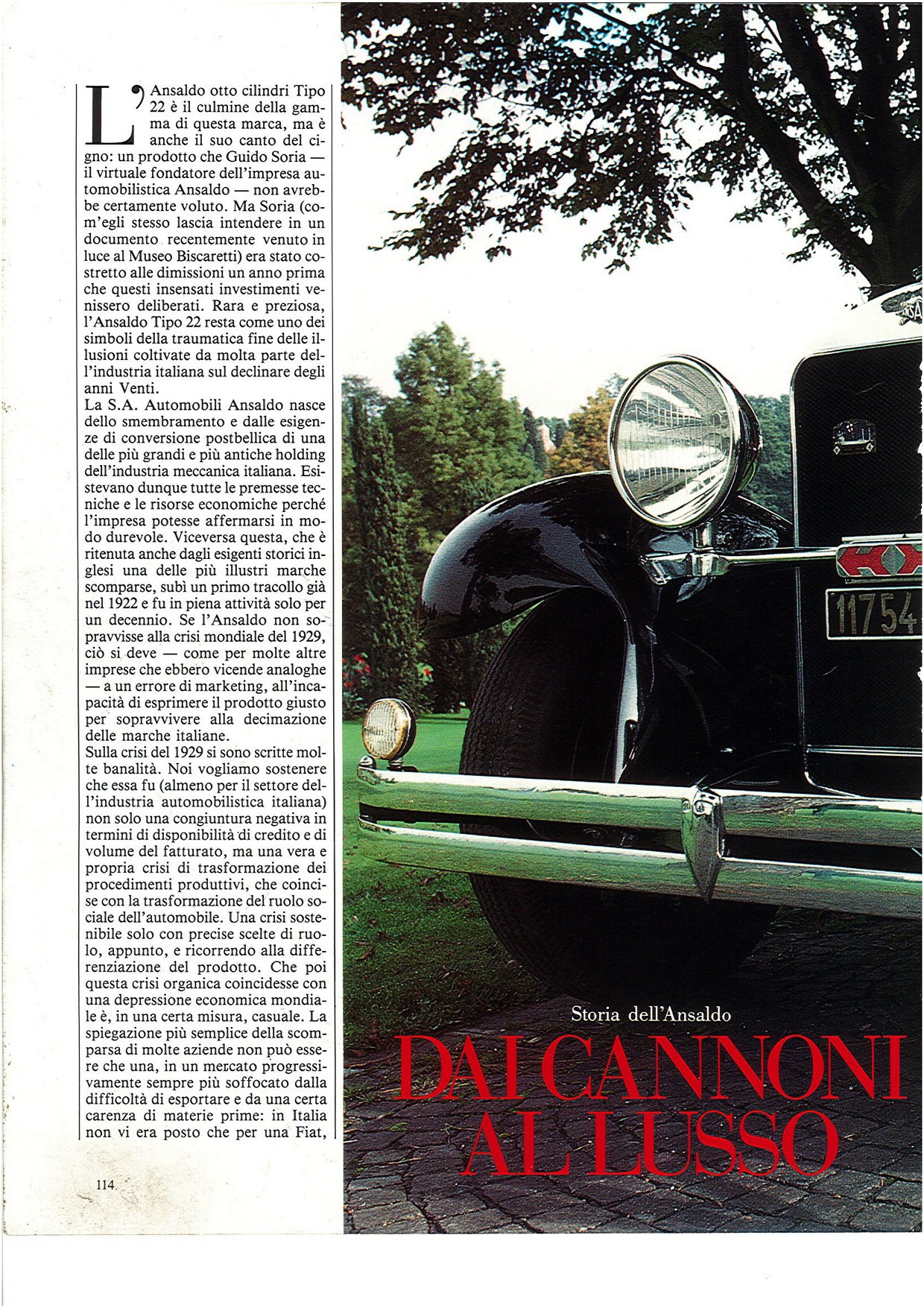 La nostra Ansaldo Tipo 22 del 1930 protagonista dell’articolo monografico “Storia dell’Ansaldo – Dai cannoni al lusso” degli anni ’90.