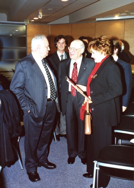 PROFILO DEL PREMIATO – Apollinare Veronesi, nato a Lugo di Grezzana il 28 Agosto del 1911, proviene da una famiglia che da secoli praticava l’arte molitoria in Valpantena. Nel 1952 ha dato vita all’industria per la produzione di alimenti zootecnici. Il 2 giugno 1977 è stato nominato Cavaliere del Lavoro. Nel 1991 è stato insignito della laurea “honoris causa” in Scienze Agrarie da parte dell’Università Cattolica del Sacro Cuore di Milano. Oggi il Gruppo Veronesi è il più importante in Italia, e uno dei primi a livello europeo, nel settore mangimistico, nell’allevamento e nella trasformazione in prodotti alimentari di carni avicole con il marchio A.I.A.- Agricola Italiana Alimentare – e di carni suine – MONTORSI. Nel 1999 ha espresso un fatturato consolidato di 2.471 miliardi di lire, con un giro d’affari di 6.000 miliardi; impiegando direttamente 6.000 persone.