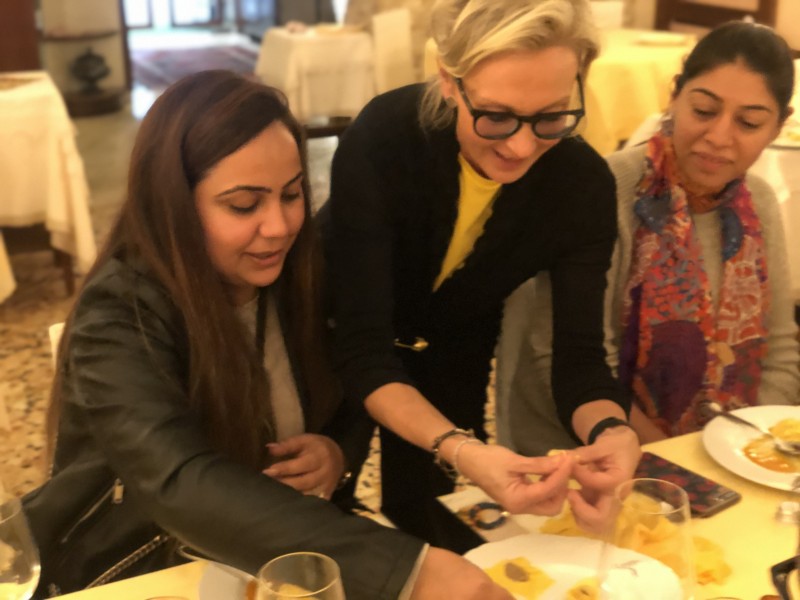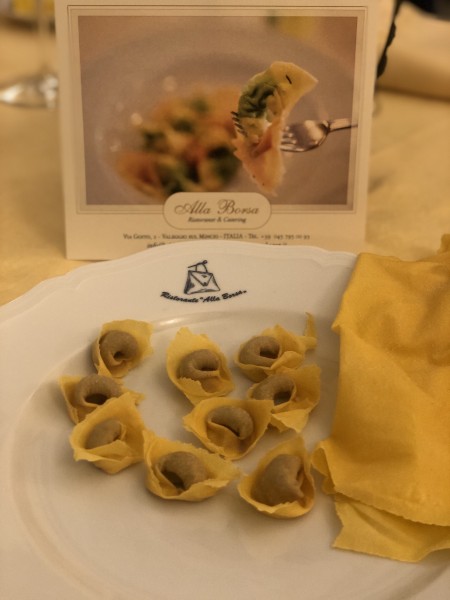 A pranzo gli operatori sono stati ospiti del noto Ristorante Alla Borsa di Valeggio sul Mincio, grazie alla professionilaità ed accoglienza della titolare Nadia Pasquali, hanno avuto la possibilità di toccare con mano la "pasta fatta in casa" per provare a realizzare a mano i famosi tortellini tramite un breve tutorial.
