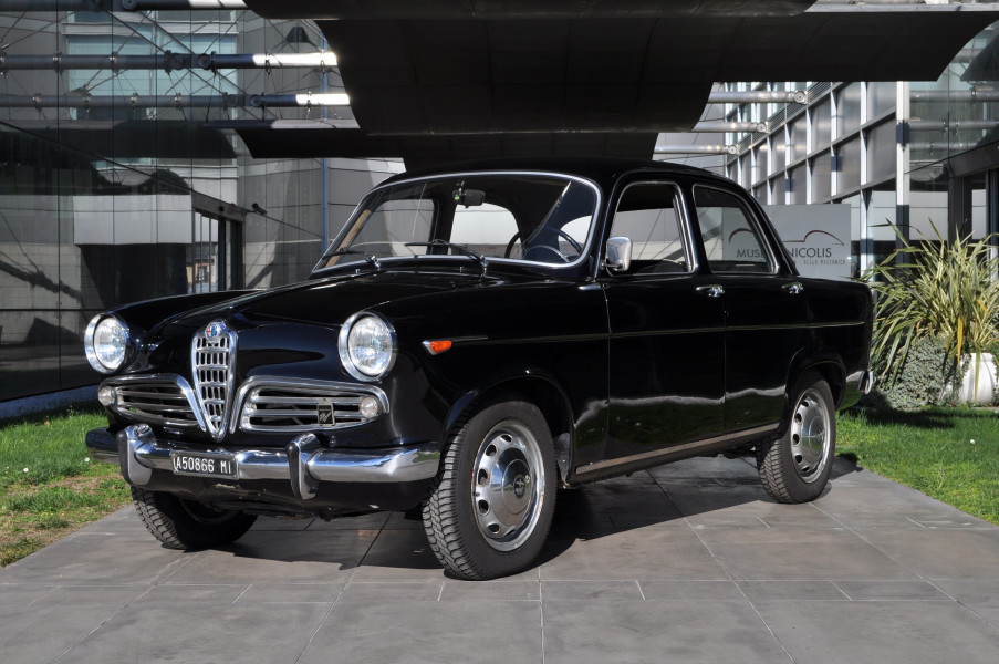 Presentata al Salone dell'Automobile di Torino nel 1955, era la vettura del rilancio e il successo arrivò. Stranamente fu presentata dapprima la versione Sprint: il coupé disegnato da Bertone, e solo nel 1955 la berlina, che avrebbe contribuito, con le Fiat 600 e 1100 e le Lancia Appia, a motorizzare l’Italia. Anche la berlina, a 4 porte e 4 posti con cambio al volante, si rivelò estremamente agile e brillante, rilanciando l’immagine delle classiche vetture Alfa Romeo anteguerra: buona velocità, tenuta di strada, affidabilità ed eleganza. Nel 1959 e nel 1961 la carrozzeria venne modificata con interventi di re-styling che mantennero viva ed inalterata negli anni la simpatia del pubblico verso questo modello, perpetuandone il successo commerciale e alimentandone la leggenda. La vettura del Museo è una Giulietta t.i. (Turismo Internazionale), versione più potente presentata nel 1957 che in breve tempo divenne la più venduta della serie.