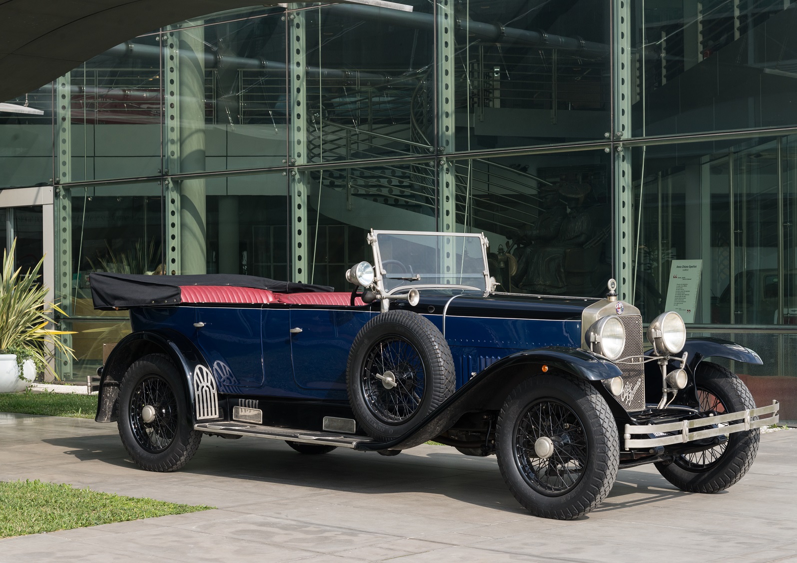 Dal punto di vista tecnico e funzionale, l’esemplare conserva soluzioni tipiche degli anni Venti: il tergicristallo è azionato manualmente dall’abitacolo, il clacson è elettrico, affiancato da una tromba manuale, utilizzata quando l’autonomia della batteria risultava insufficiente. Lo specchietto retrovisore, collocato sul retro del fanale destro, riflette gli standard costruttivi e normativi dell’epoca.