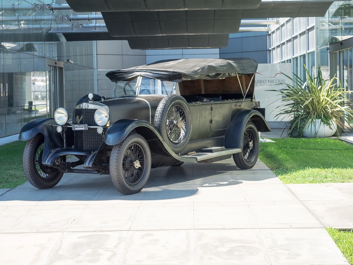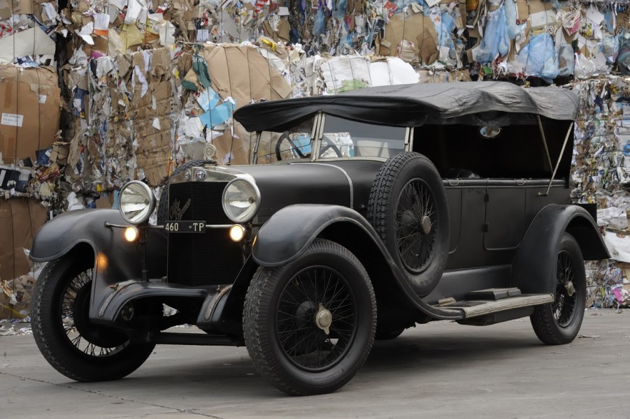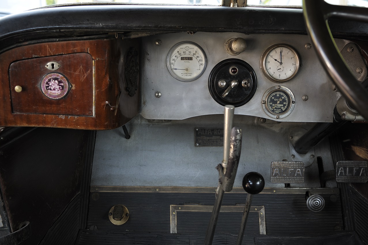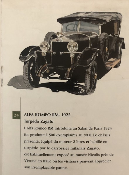 Sfruttando molti particolari meccanici e di telaio della RL, l’Alfa Romeo presentò nel 1923 una versione più economica della sua vettura di punta. Progettata per un più tranquillo uso familiare piuttosto che per la clientela sportiva, la RM aveva un motore quattro cilindri che derivava direttamente da quello a sei cilindri della sorella maggiore. La vettura del Museo fu vestita dalla carrozzeria “Zagato” di Milano, fondata da Ugo Zagato nel 1919 e così si è conservata nel tempo. In questa vettura si ritrovano la praticità e l’eleganza di una formale carrozzeria torpedo e la sportività e la leggerezza tipiche delle creazioni di Zagato, che sono le caratteristiche che hanno reso celebre nel mondo il carrozziere milanese. La nostra RM porta la targa originale - TP 460 - ed era appartenuta al Vescovo di Trapani. Con soli 10.000 km scarsi è un esemplare molto raro conservato. Nel 2003 ha vinto l’ambito premio d’eleganza Louis Vuitton Classic nella categoria Veteran e Vintage e si è aggiudicata il Premio Speciale della giuria per la Conservazione.