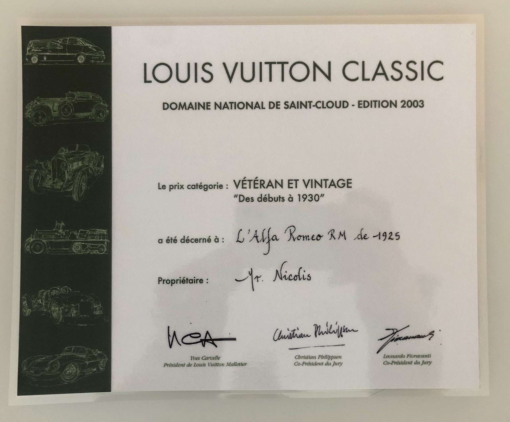 2003 Louis Vuitton Classic - Parc de Bagatelle, Premio di Categoria "Vétéran et Vintage" e Premio Speciale per la Conservazione.