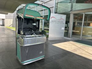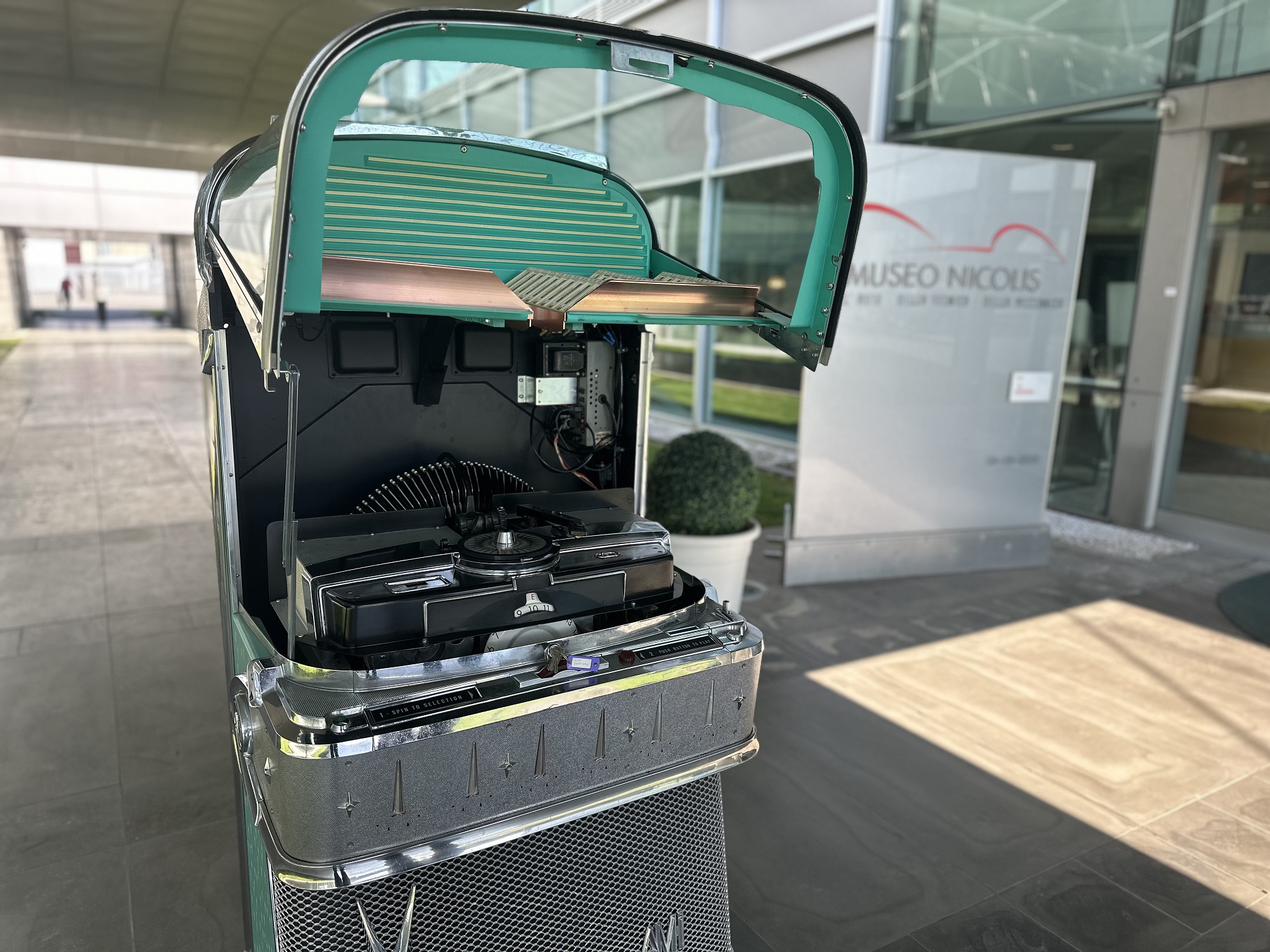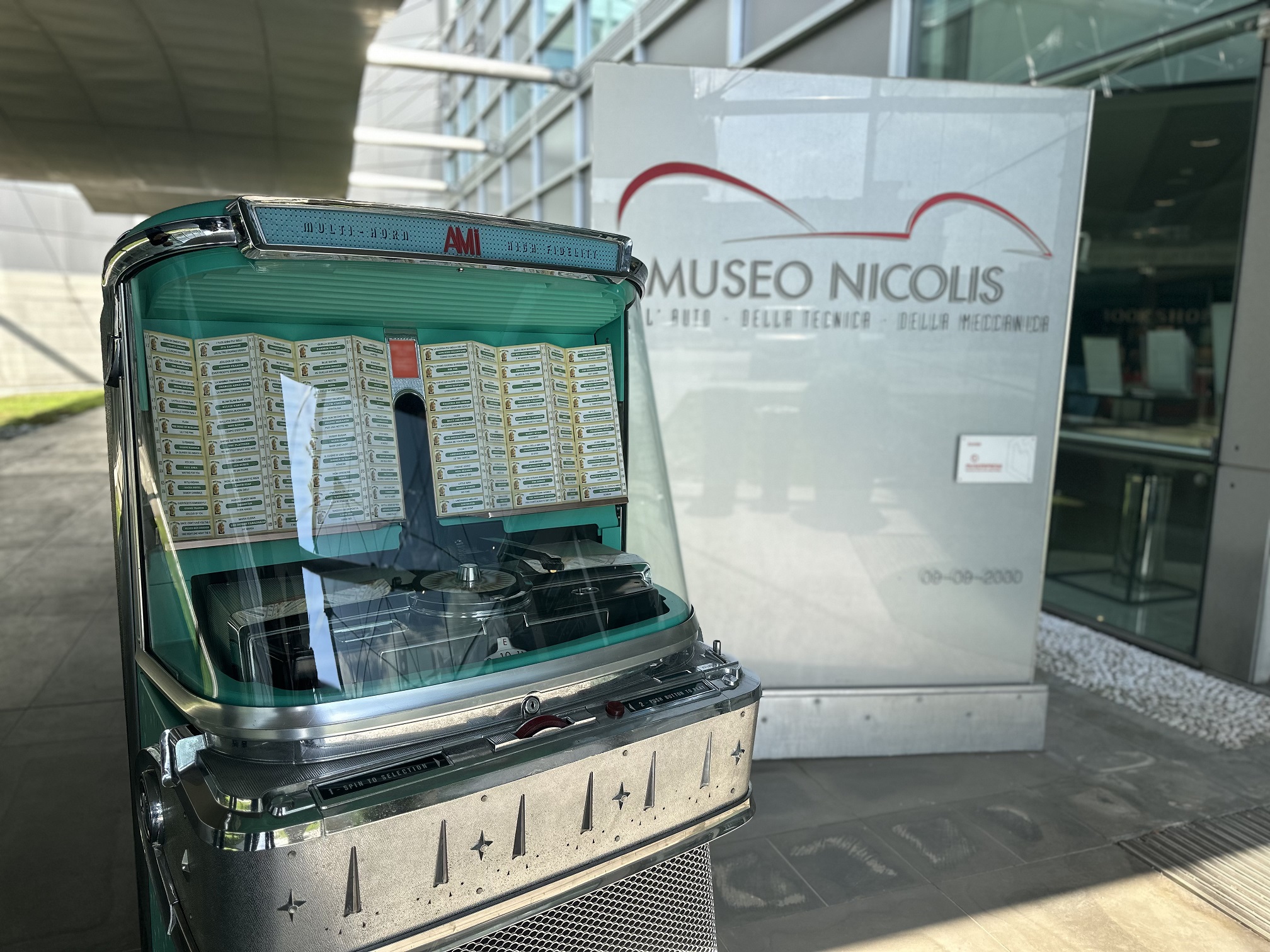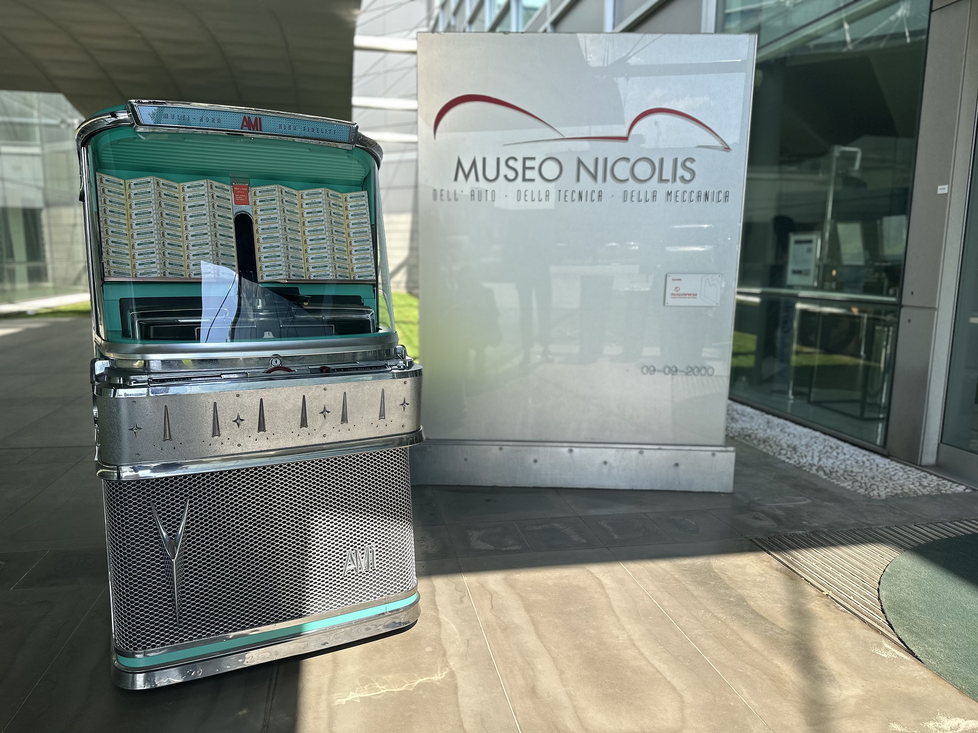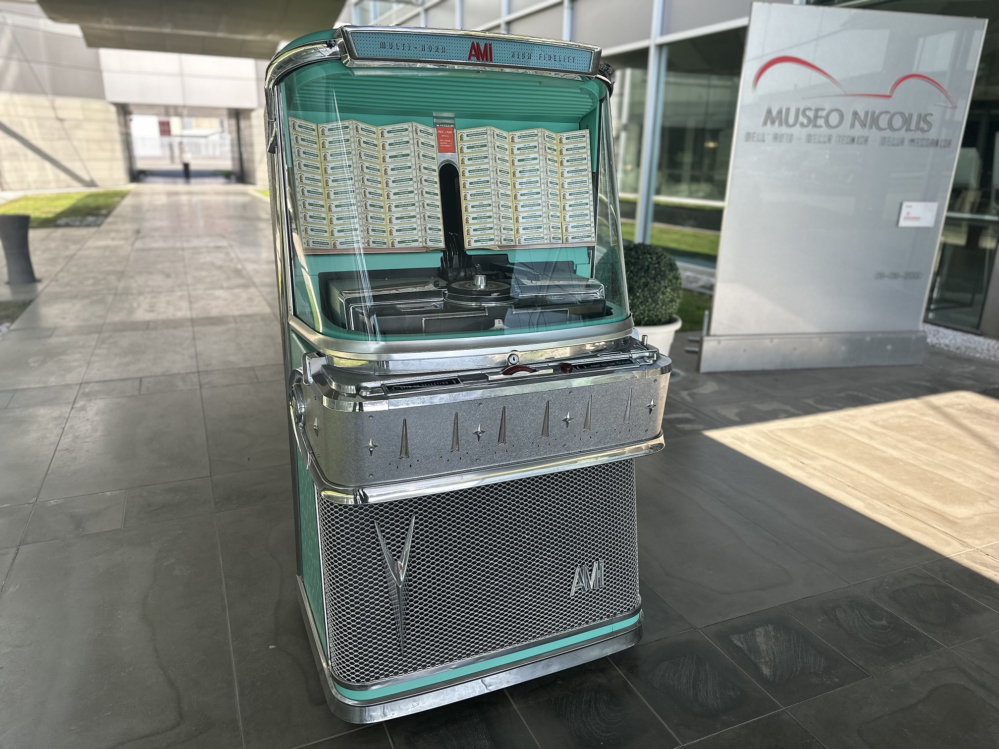 Il Jukebox AMI del Museo Nicolis è il modello 200 e venne soprannominato "fascione". Questo modello è stato prodotto sia in versione a tasti che a ruota e presenta i titoli dei brani musicali in una grande cartelliera a ventaglio con il grande vetro frontale che richiama il parabrezza delle auto americane anni 50. Mantiene le forme essenziali e morbide del modello H, costruito l’anno prima, ma viene aumentata la quantità di parti cromate. Il design si ispira chiaramente alle linee delle grandi automobili americane, infatti scorrendo verso il basso del mobile e sotto la tastiera, l’ Ami 200 presenta una grande fascia simile a un paraurti e nei lati vi sono serigrafate dei piccoli fregi colorati che ricordano il vinile utilizzato per i sedili delle auto. Veniva commercializzato in tre versioni, azzurra, nera e rosa, e con il meccanismo X Record Charger a 100, 120 o 200 selezioni e poteva essere a tasti con il selettore automatico elettrico, oppure manuale con la selezione a rotella.
