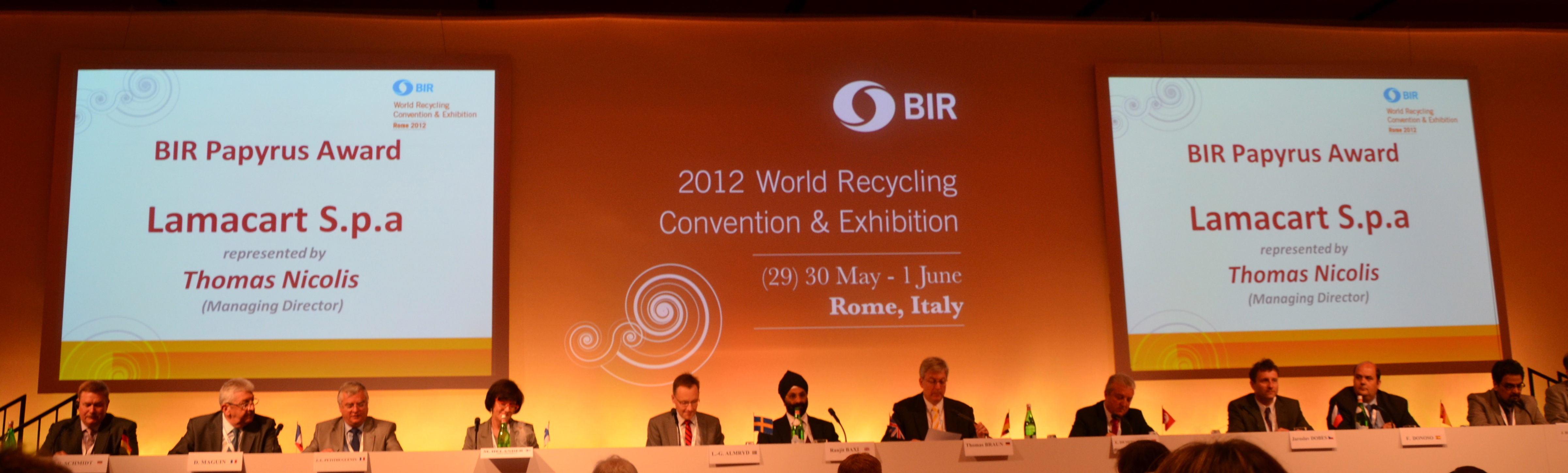 Il “Papyrus Award 2012 ” è stato consegnato a Thomas Nicolis, Amministratore Delegato di Lamacart, dal presidente B.I.R – Ranjit Singh Baxi – nel corso di una cerimonia che si è tenuta a Roma e che ha visto la partecipazione di ben 1200 delegati provenienti da 70 paesi.