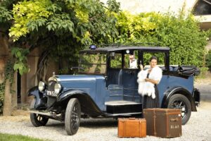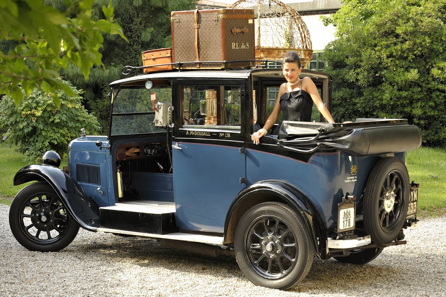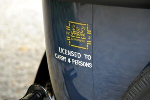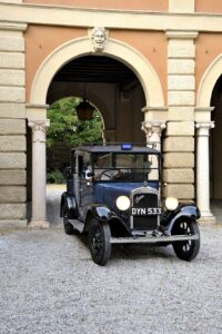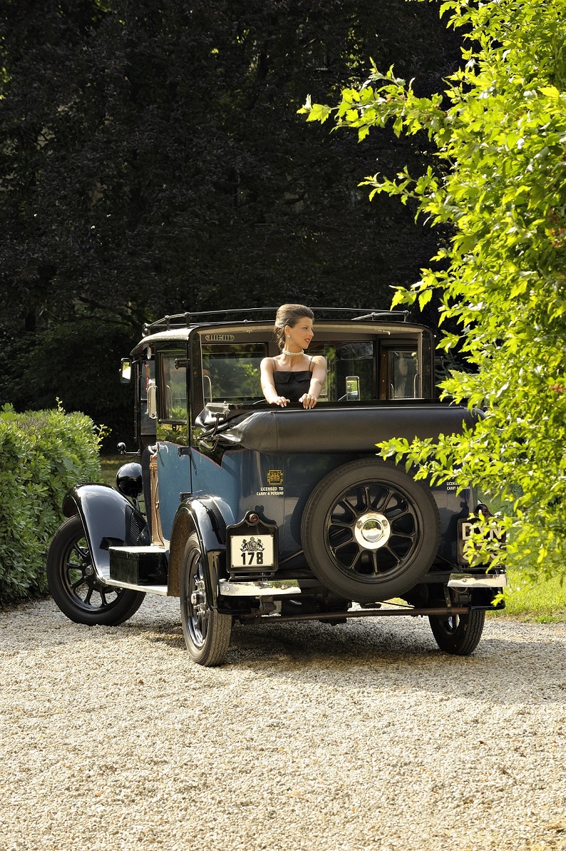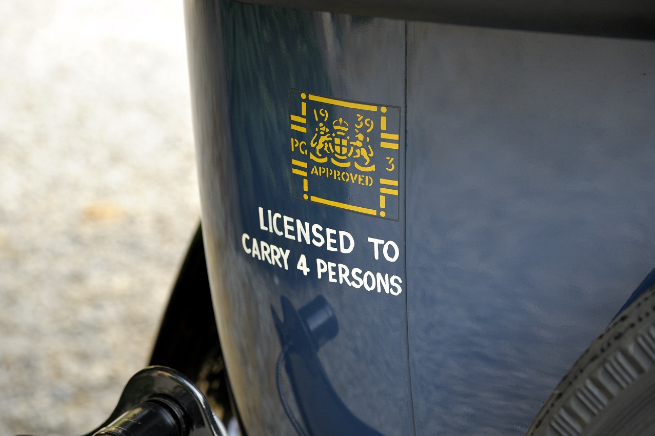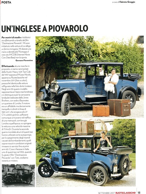 "Negli anni '30 questo modello rappresentava il tipico taxi londinese e si distingueva per la carrozzeria landaulet realizzata dalla Jones Brothers, con sede a Bayswater, un quartiere di Londra. Il motore era un affidabile ma decisamente tranquillo 4 cilindri in linea di 1861 cm3, che erogava solo 27 CV a 2000 giri/min, sufficienti comunque a muoversi nel traffico di una metropoli, com'era già Londra a quell'epoca, e a spingere la vettura a una velocità massima di 75 km/h. Durante la seconda guerra mondiale alcuni di questi taxi furono utilizzati come autopompe, per lo spegnimento degli incendi causati da bombardamenti; quelli sopravvisuti in condizioni originali rimasero in servizio fino ai primi anni '60. Cosa ci facesse in Italia uno di questi taxi nel 1955 quando fu girato il film - Destinazione Piovarolo - con Totò, crediamo resterà un mistero."