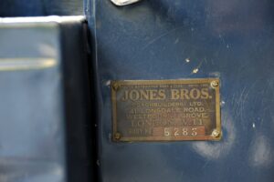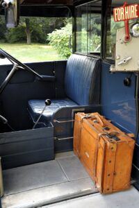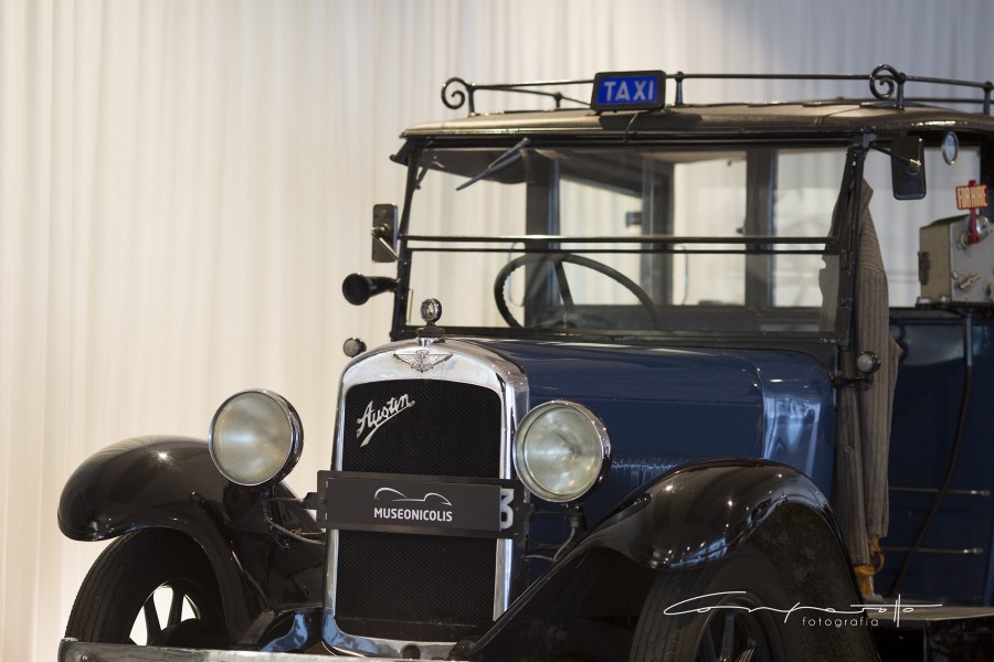 Chi non ha mai visto almeno in un film un taxi di Londra? Neri, alti, imponenti sono una delle caratteristiche della città. Eppure negli anni Trenta l’archetipo dei taxi londinesi era una vettura diversa, una landaulette ovvero una berlina apribile nella parte posteriore per permettere ai passeggeri di ammirare le bellezze della città. Una delle carrozzerie specializzate nella costruzione di taxi fu la Jones Brothers di Bayswater, Londra, che utilizzava per le sue creazioni l’indistruttibile telaio Austin 12/4 Heavy, dotato di un motore poco potente ma molto affidabile: costruiti negli anni Trenta, i taxi landaulette di Jones Brothers furono utilizzati durante la II Guerra Mondiale come autopompe e rimasero in servizio sulle vie di Londra fino ai primi anni Sessanta, quando diventarono il mezzo di trasporto preferito degli hippies per i loro giri intorno al mondo. La vettura del museo è stata restaurata in Inghilterra a metà degli anni Novanta ed ha ancora la sua scritta sul tetto, il tassametro e le cinghie di cuoio necessarie per legare le eventuali valigie dei passeggeri nell’apposito spazio a fianco dell’autista. All'interno vi sono ancora delle pubblicità originali dell'epoca. Una vettura come questa compare nel film "Destinazione Piovarolo" con Totò; pellicola del 1955, diretto dal regista Domenico Paolella.