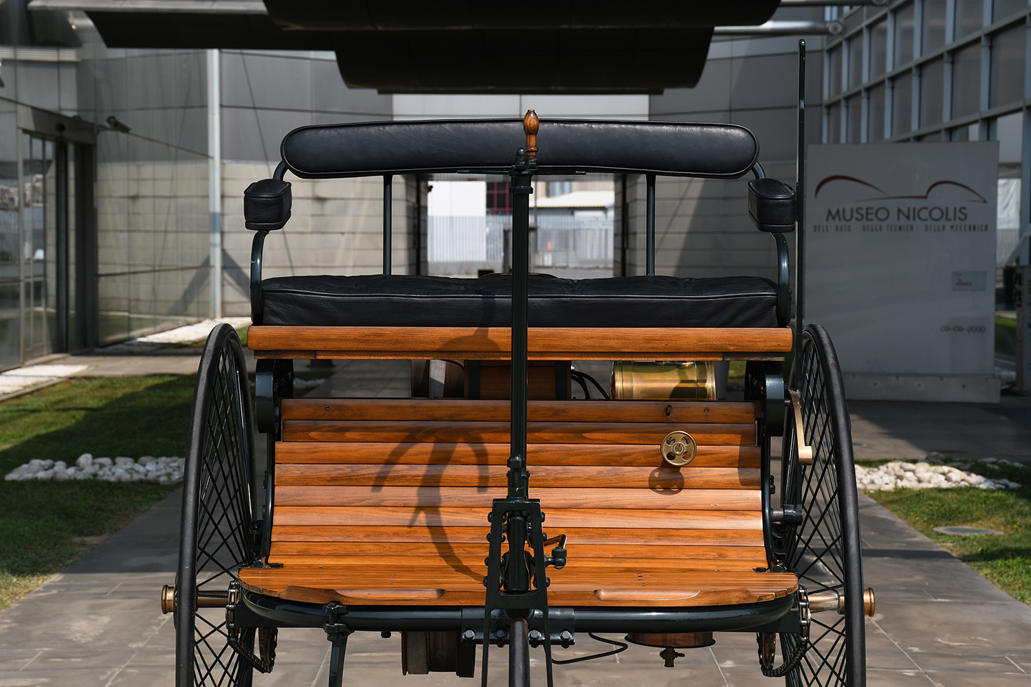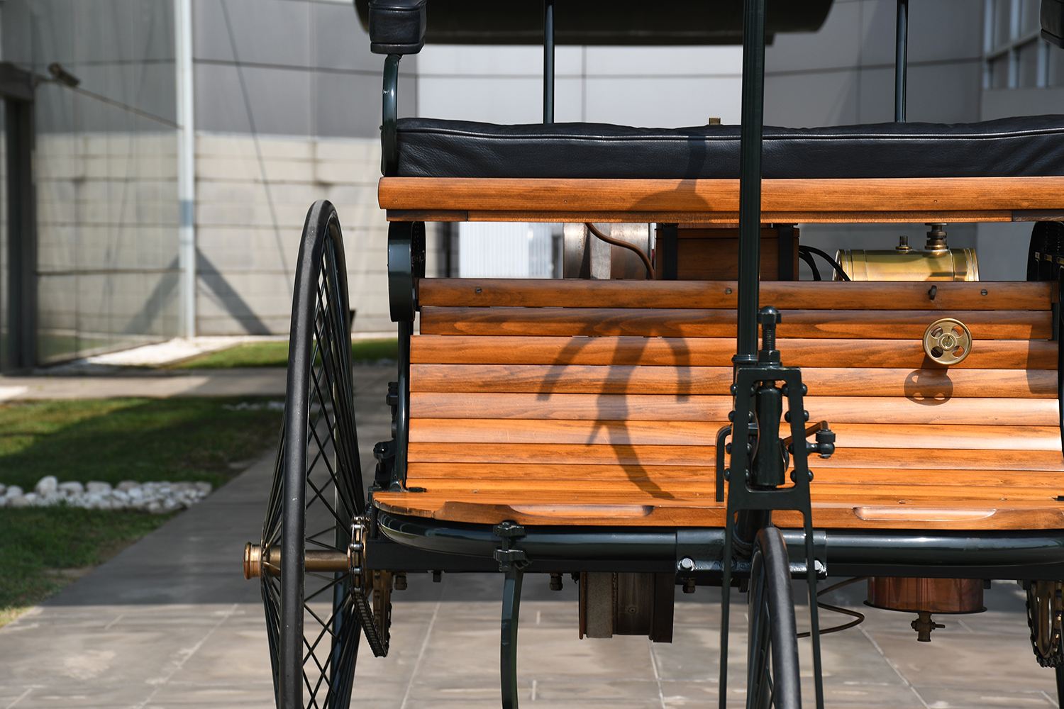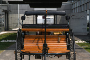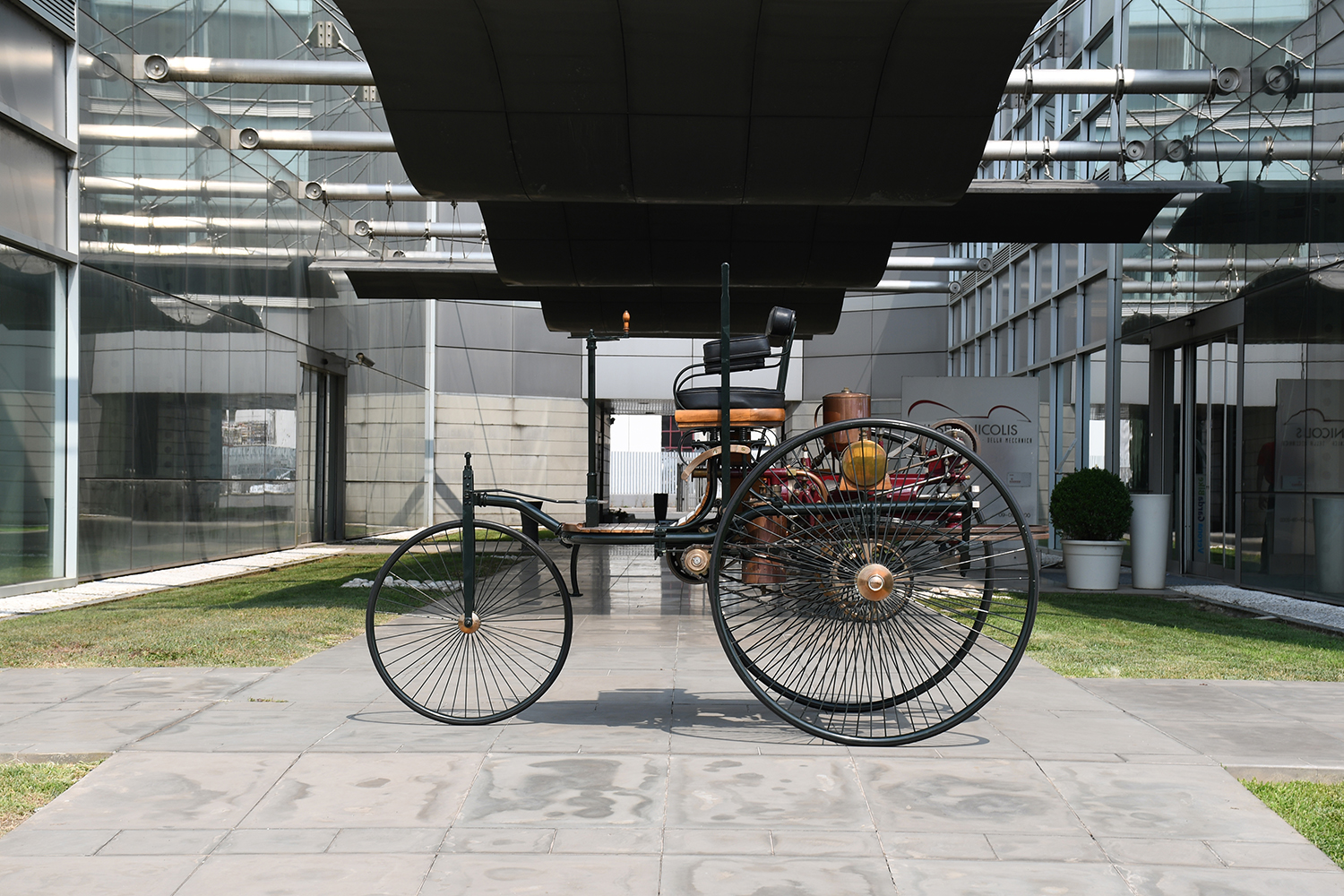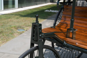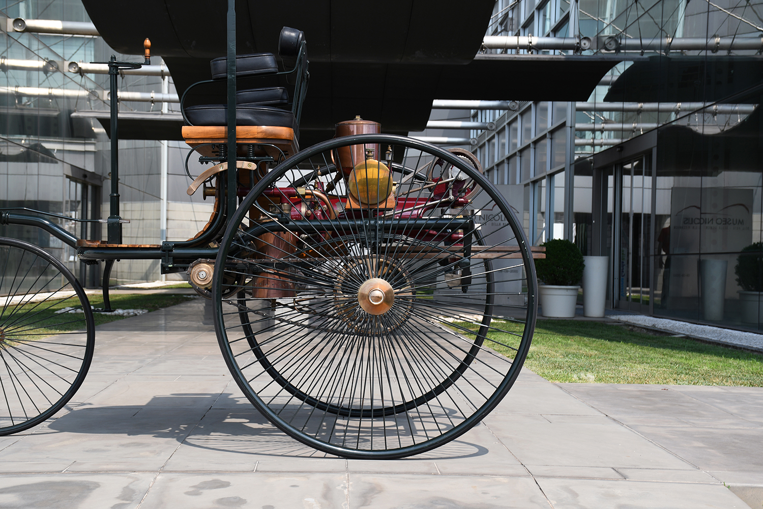 L’esemplare esposto è la ricostruzione esatta (by Mercedes-Benz) del modello n.1, il “Velociped” brevettato con il numero “37 435” il 29 gennaio 1886.