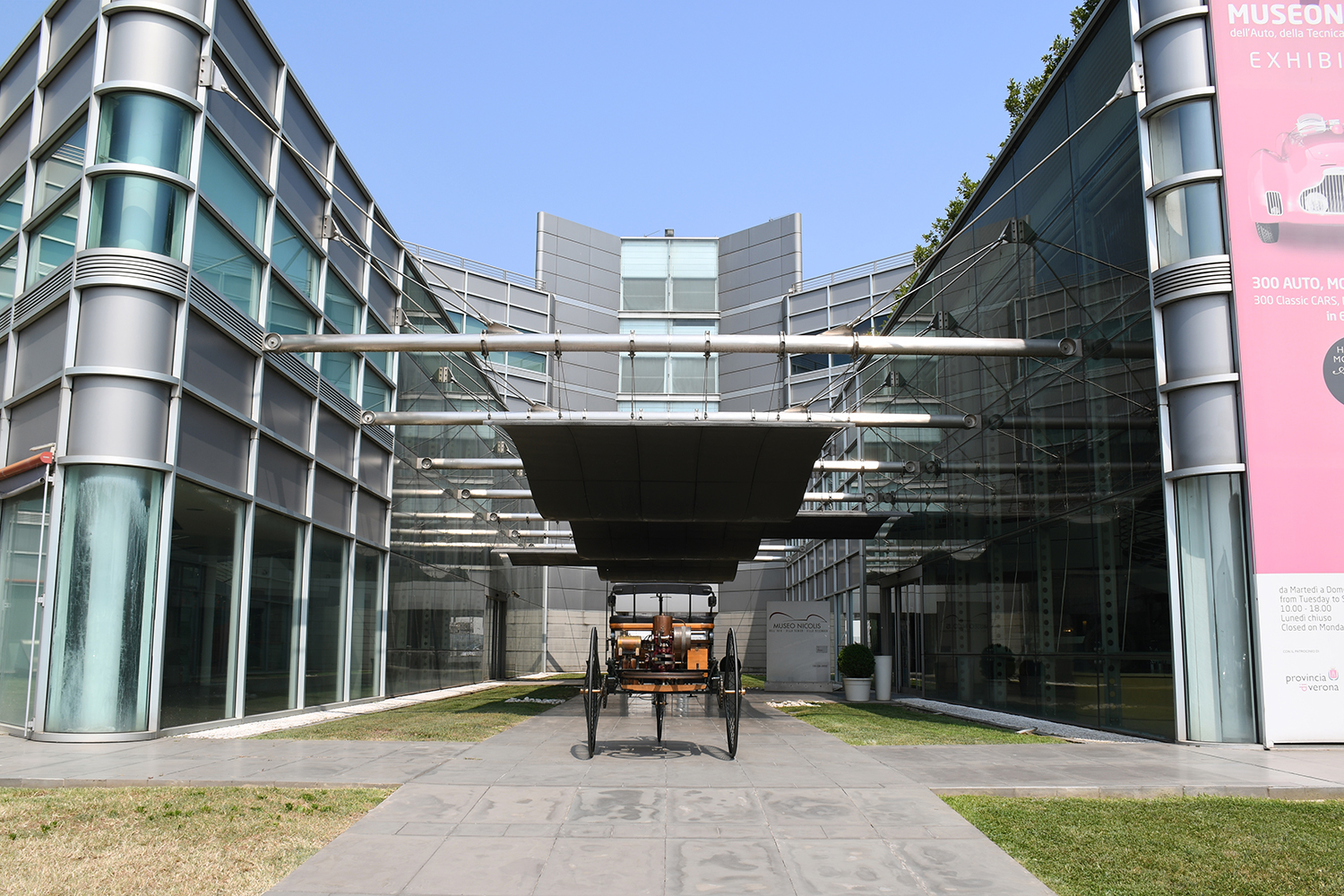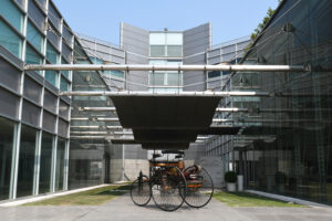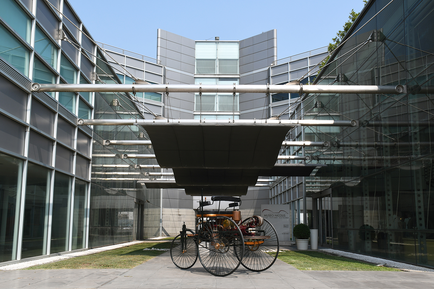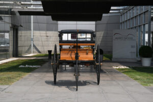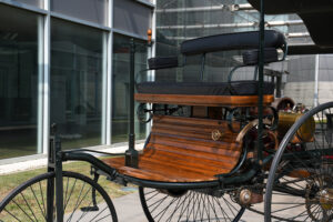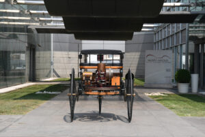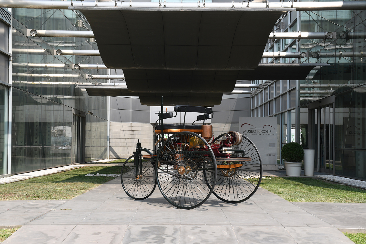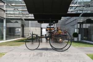 L’esemplare esposto è la ricostruzione esatta (by Mercedes-Benz) del modello n.1, il “Velociped” brevettato con il numero “37 435” il 29 gennaio 1886.