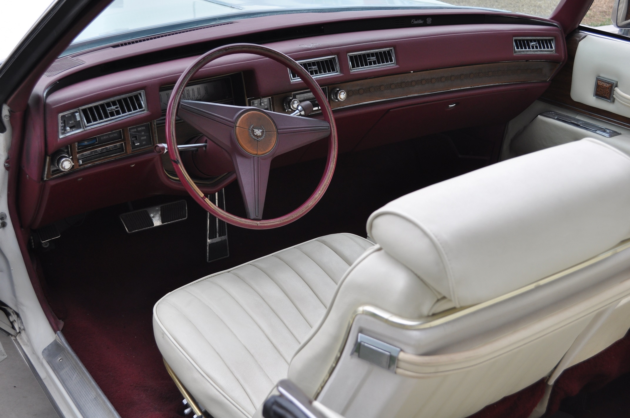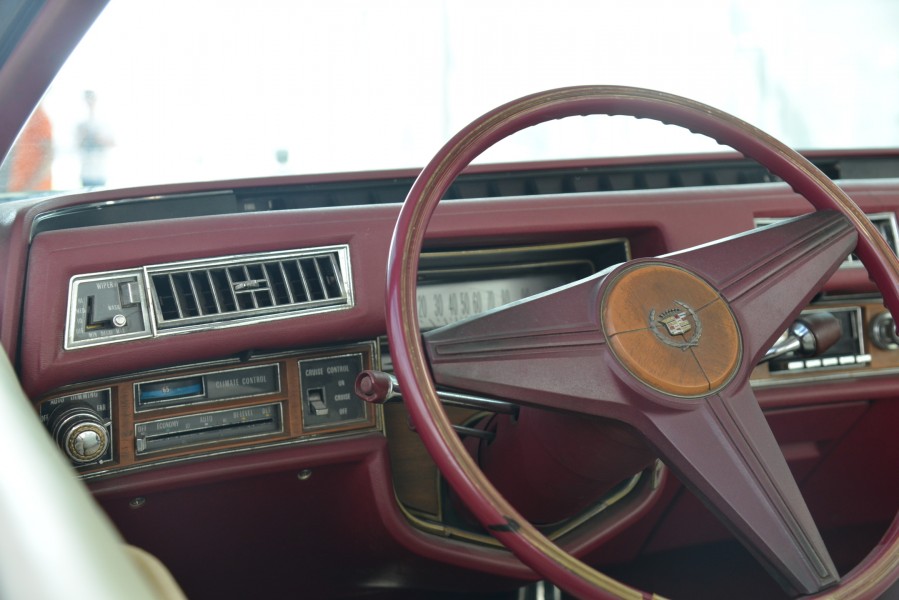 Il Model Year 1974, in particolare, introduce una nuova calandra, paraurti più voluminosi (in risposta alle nuove normative federali di sicurezza) e fanali posteriori ridisegnati, oltre ad alcuni aggiornamenti degli interni. Sarà anche l’ultima Eldorado a presentare i passaruota posteriori coperti e i fari anteriori tondi: già dal 1975 queste caratteristiche verranno sostituite da passaruota scoperti e gruppi ottici rettangolari. Con i suoi oltre 5,7 metri di lunghezza, l’Eldorado del 1974 incarna l’estetica del personal luxury car americano: imponente, riccamente rifinita, progettata per offrire un comfort assoluto più che prestazioni sportive. L’equipaggiamento includeva dotazioni all’avanguardia per l’epoca, come il climatizzatore automatico, i sedili regolabili elettricamente, il cruise control e la radio con ricerca elettronica. Era l’auto perfetta per chi voleva viaggiare nel massimo del lusso e dello stile.