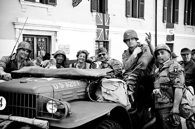 figuranti con divise militari originali e Jeep Willys del 1943