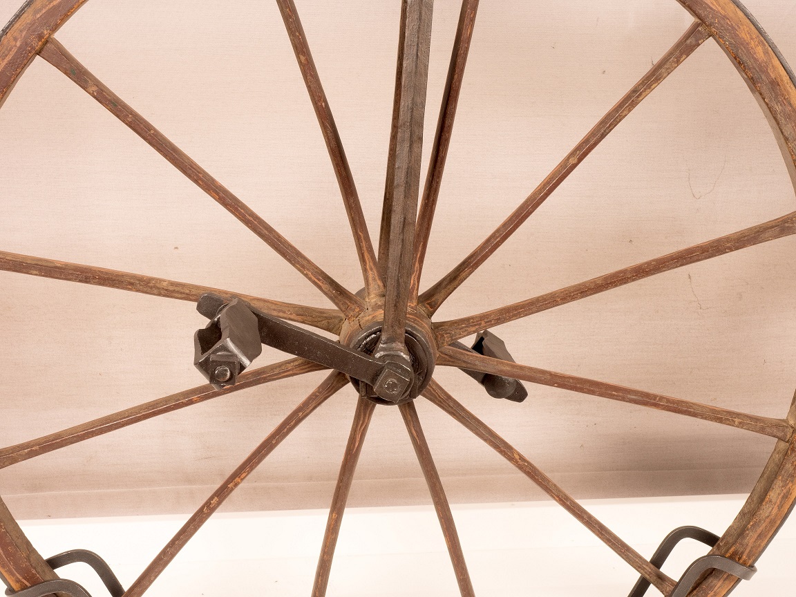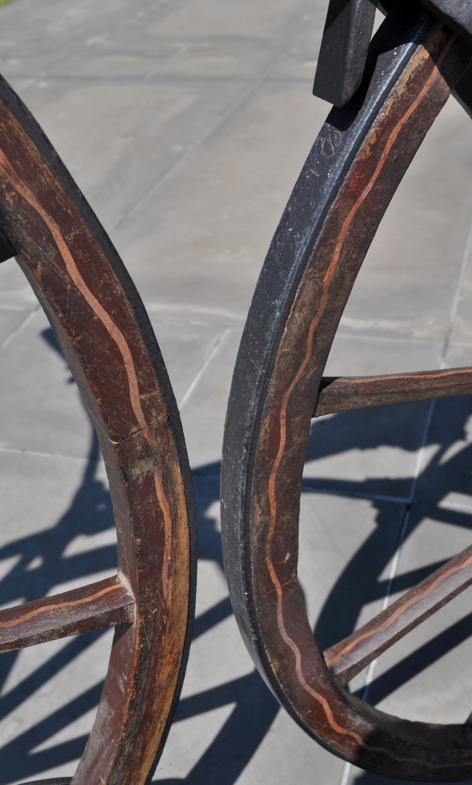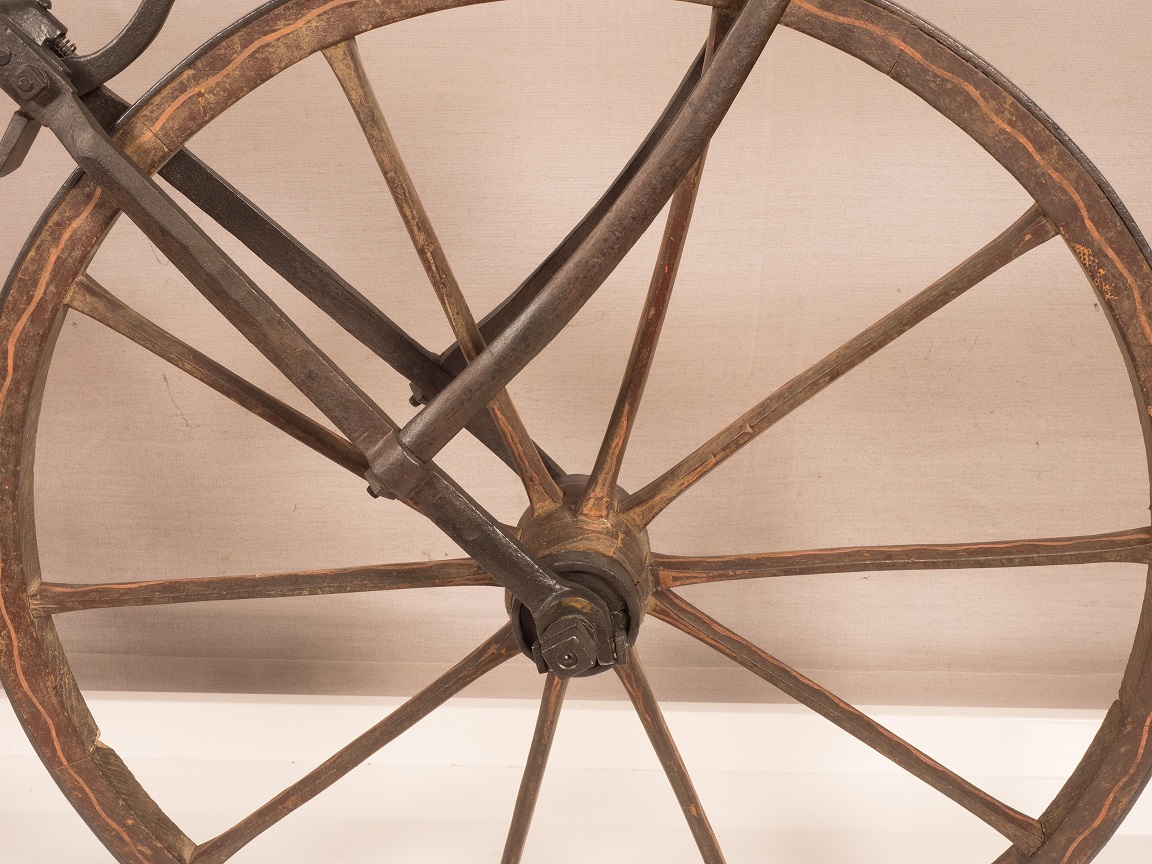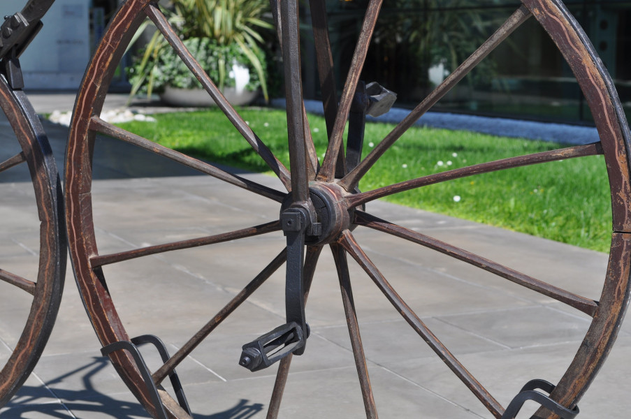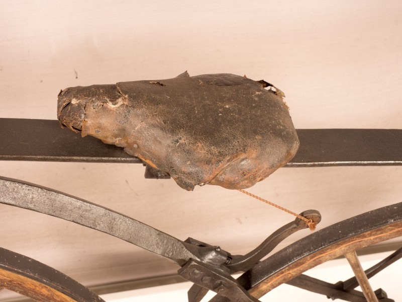 - Die Holzräder wurden später durch eine Eisenfolie geschützt und U-förmig, um einen Gummiring aufzunehmen