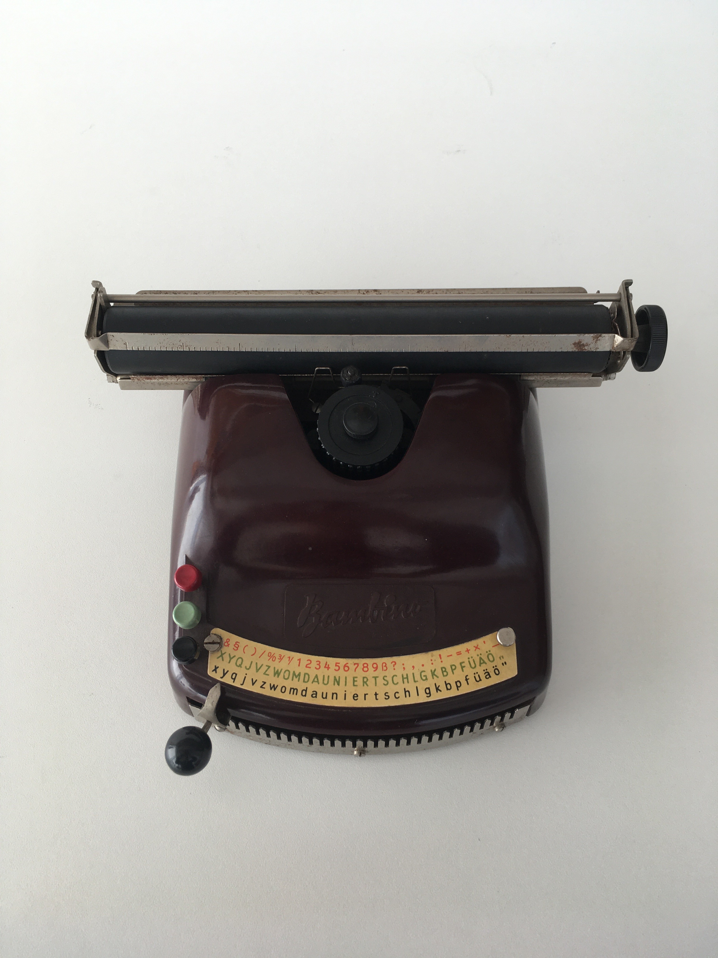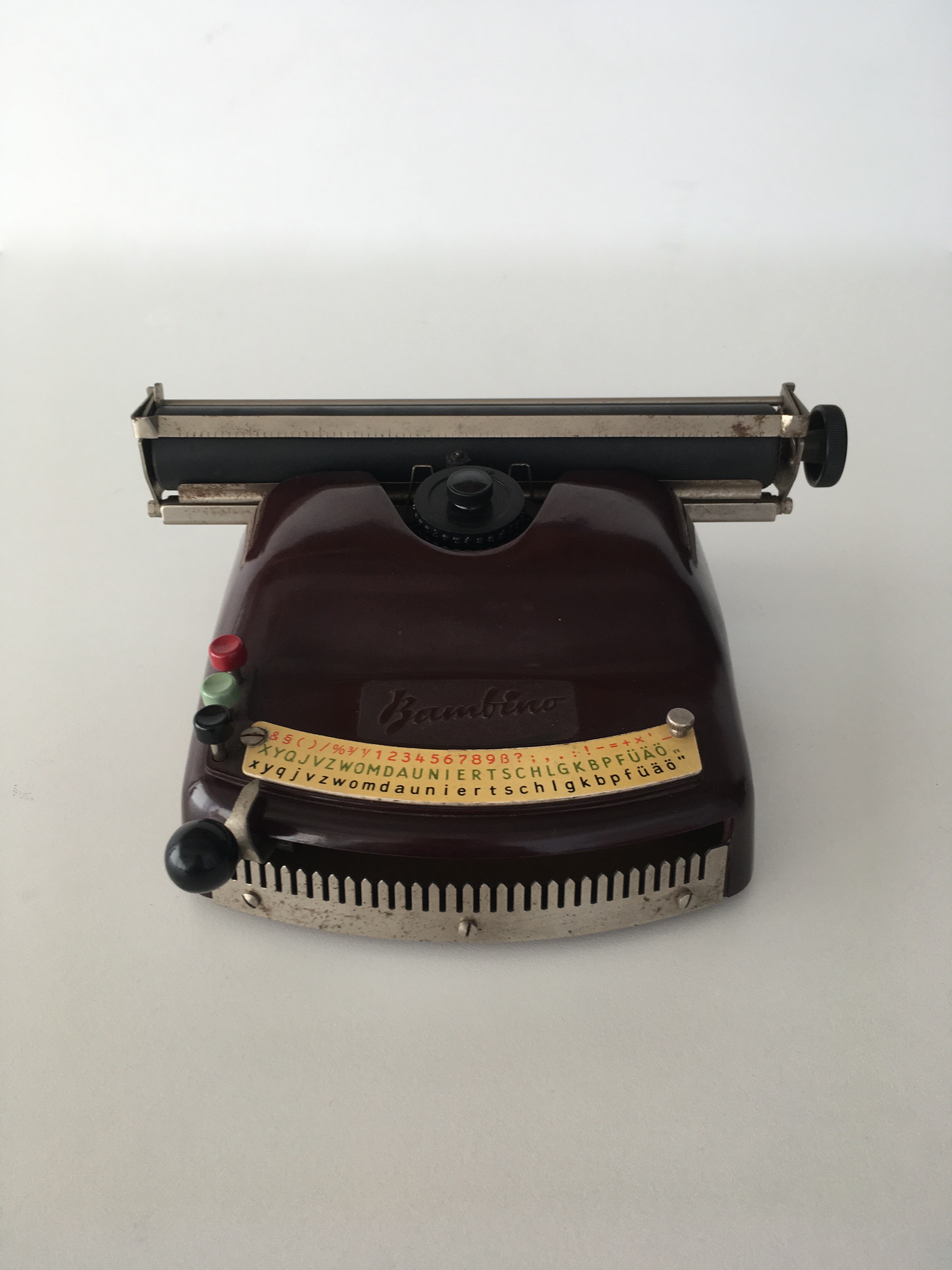 Schreibmaschinen Marca: VEB Optima Büromaschinenwerk Anno di produzione: 1950 Nazione: Deutschland Nome: Bambino VEB Optima, 1950, Bambino, Deutschland Spielzeug-Schreibmaschine des VEB Optima Büromaschinenwerk Erfurt.