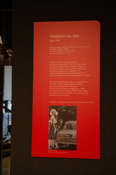 La prestigiosa Maserati A6 del 1947 del Museo Nicolis protagonista alla Mostra “L’auto, la forma e i riflessi”.