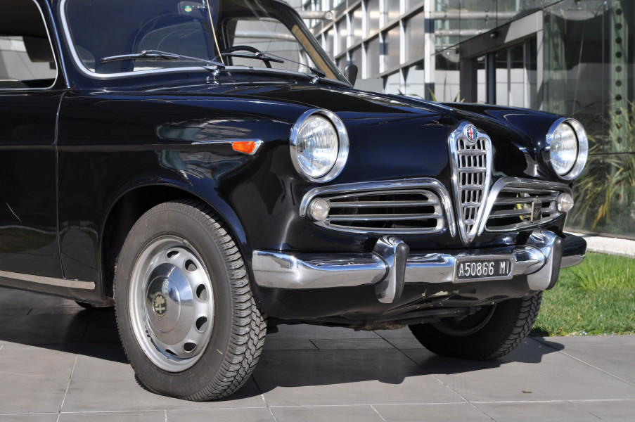 Eigenartigerweise wurde zunächst die Sprint-Version, ein von Bertone entworfenes Coupé, vorgestellt, während die Limousine, die zusammen mit dem Fiat 600 und dem Fiat 1100 sowie dem Lancia Appia zur allgemeinen "Motorisierung" Italiens beitrug, erst 1955 eingeführt wurde. Auch die Limousine mit 4 Türen und 4 Sitzplätzen und Lenkradschaltung bewährte sich bald als ein ausgesprochen vielseitiges Fahrzeug mit brillanter Leistung und trug somit zur Auffrischung des Images der klassischen Vorkriegsfahrzeuge von Alfa Romeo bei: hohe Geschwindigkeit, gute Straßenlage, Zuverlässigkeit und Eleganz.