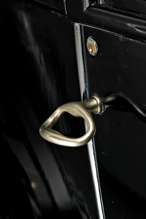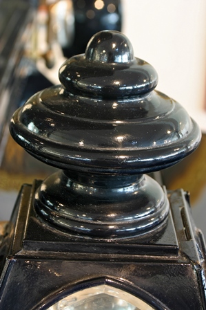 Das ausgestellte Exemplar ist ein Baker, Rauch & Lang. Diese konnten mit einer Steuerleiste gelenkt werden, welche genauso von den Vorder- als auch von den Hintersitzen aus funktionierte: dazu wurden die vorderen Sitze umgedreht und so hatte man eine perfekte Sitzecke! Die evidente Gefahrensituation wurde so berücksichtig: Durch einen Mechanismus wurde ein akustisches Warnsignal aktiviert, welches dem der Straßenbahn sehr ähnelt. Die autonome Reichweite beträgt ungefähr 70 Kilometer.