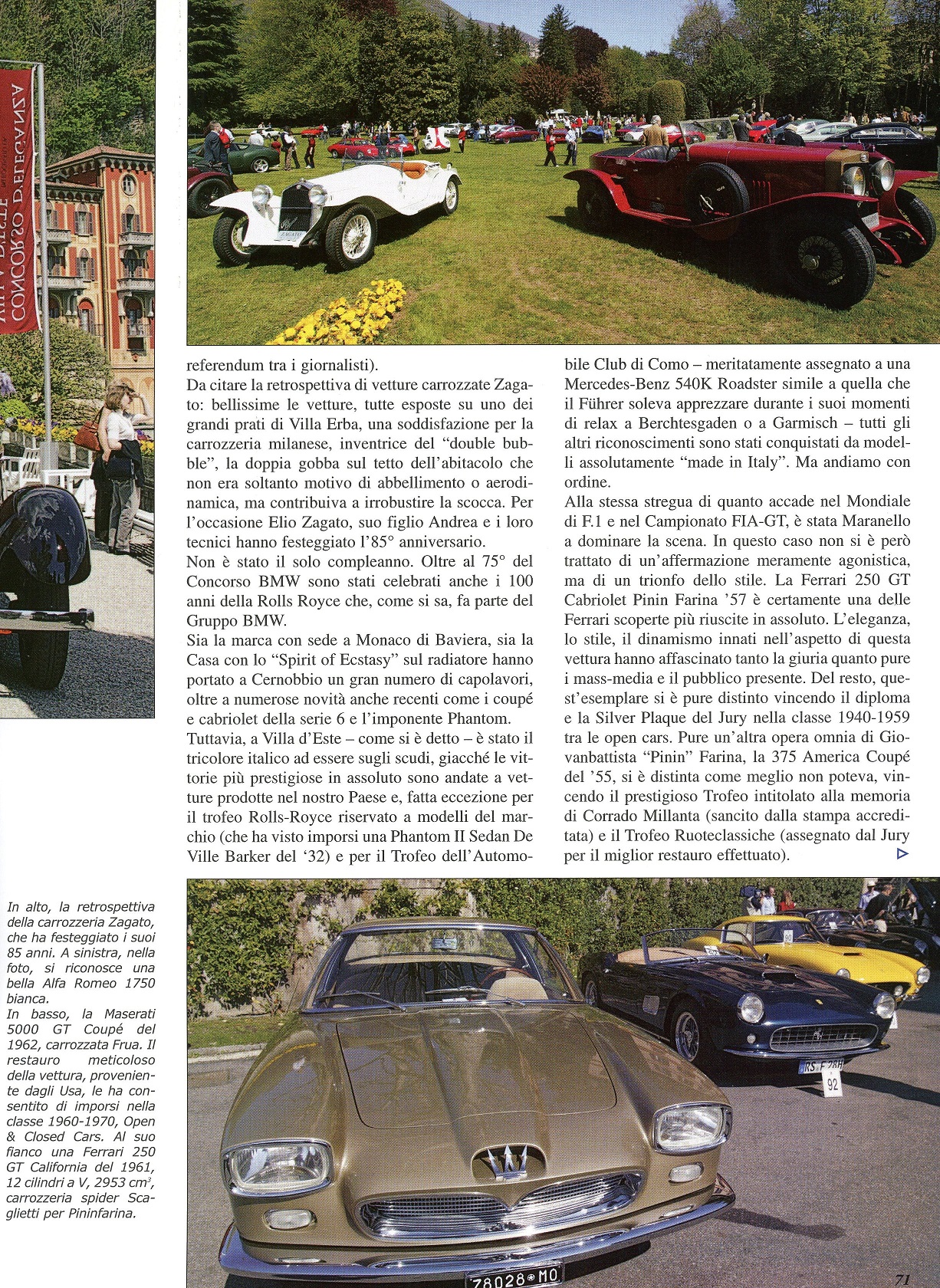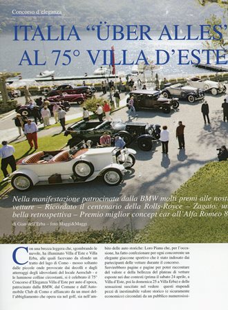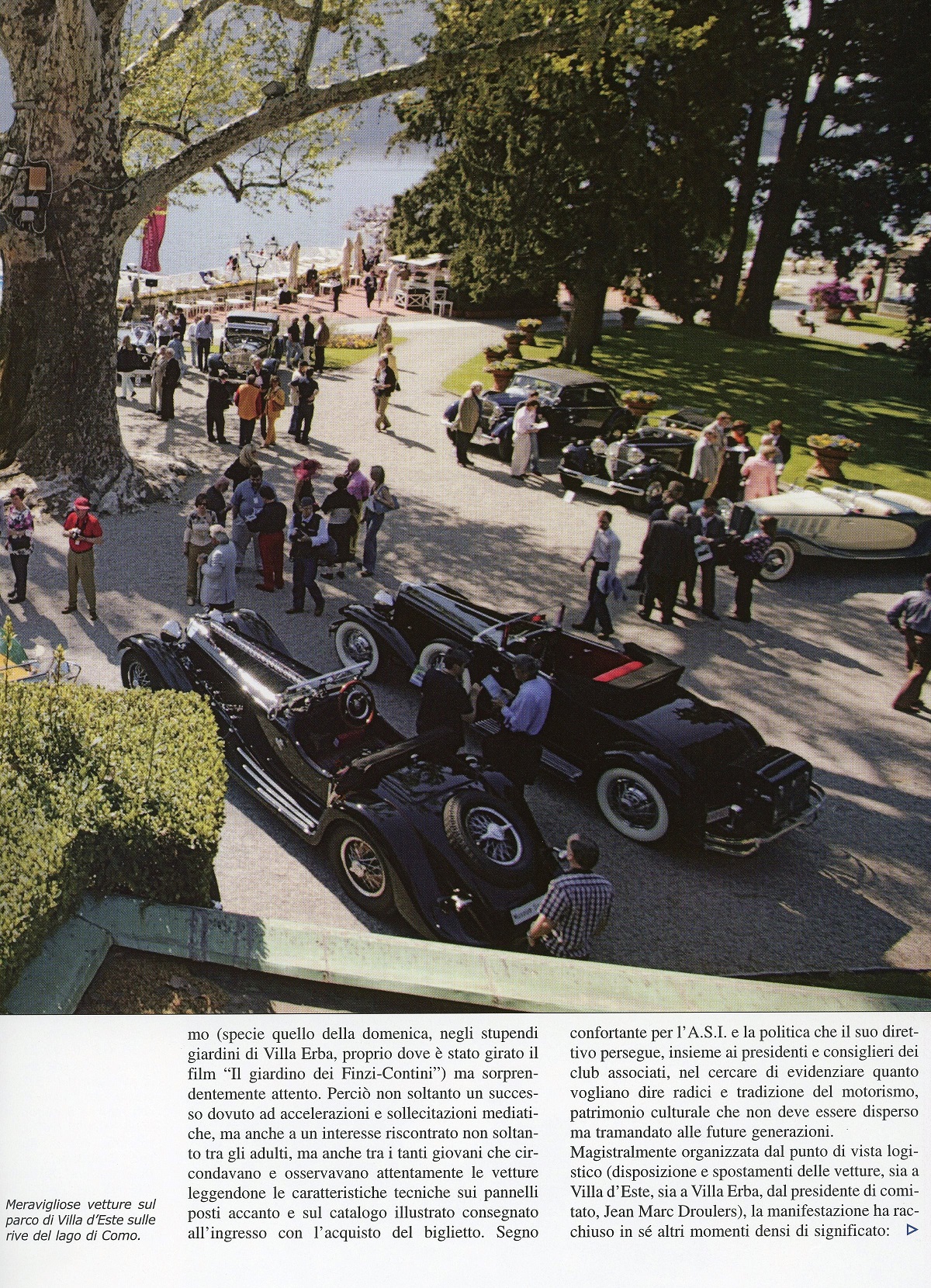 „Tra gli eventi dedicati alle automobili d’epoca, il Concorso d’Eleganza Villa d’Este è probabilmente il più prestigioso e senza dubbio il più tradizionale, dal momento che fu celebrato per la prima volta nel 1929, l’età dell’oro delle automobili aristocratiche.