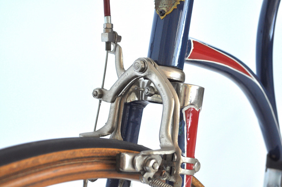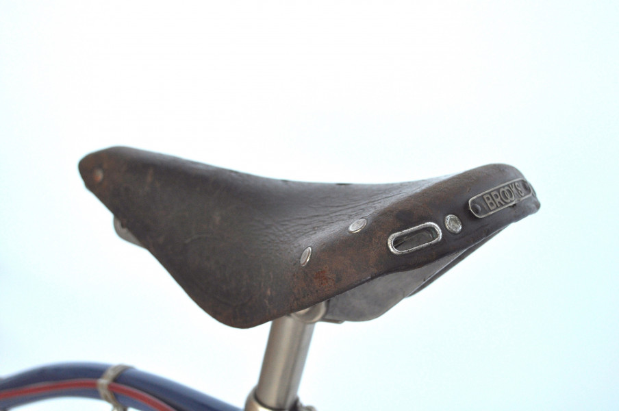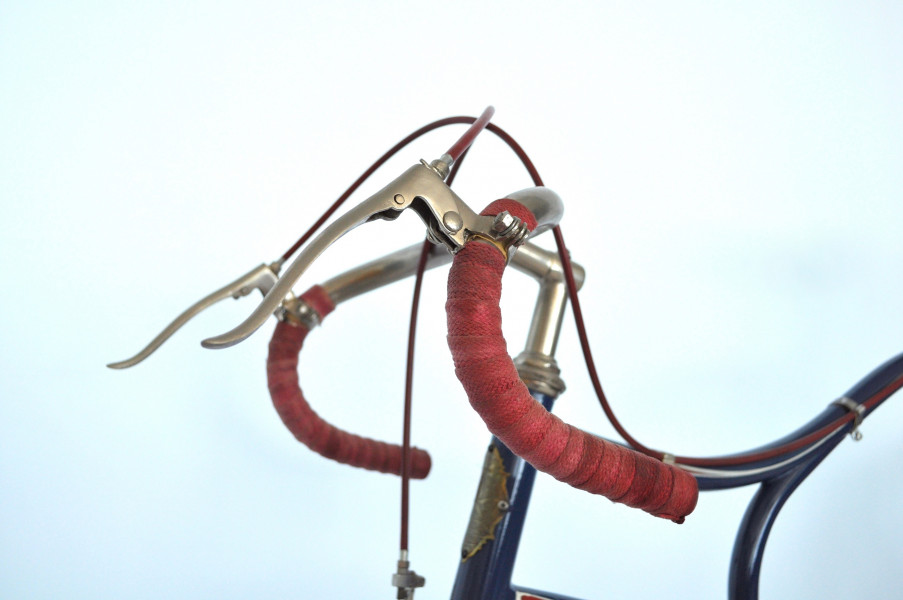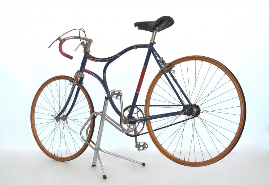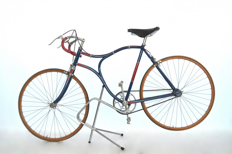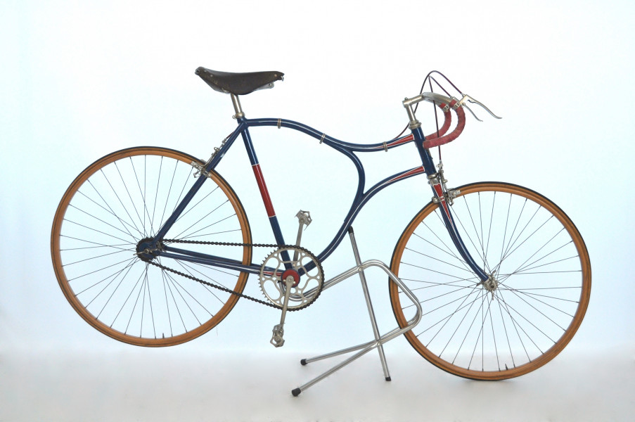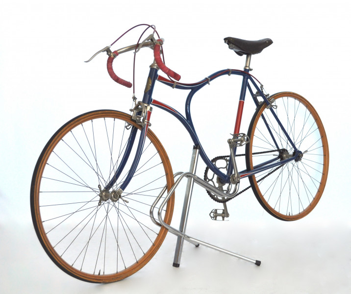 Fahrräder Marca: Cycles L'Etoile D'Or Anno di produzione: 1930 Tipo: rennrad Nazione: Frankreich Nome: Cycles L'Etoile D'Or Cycles L'Etoile D'Or, rennrad, 1930/40, Frankreich Technische Daten Blaue Farbe mit roten Einsätzen Holzkreise Rahmen mit gewölbtem Verbindungsrohr Doppelritzel, davon eines frei Bremszangenzange Brooks-Sattel