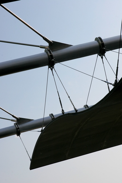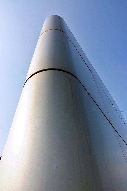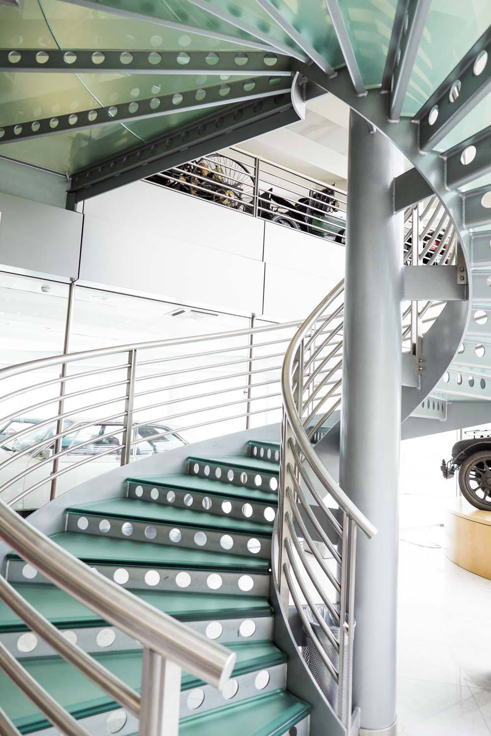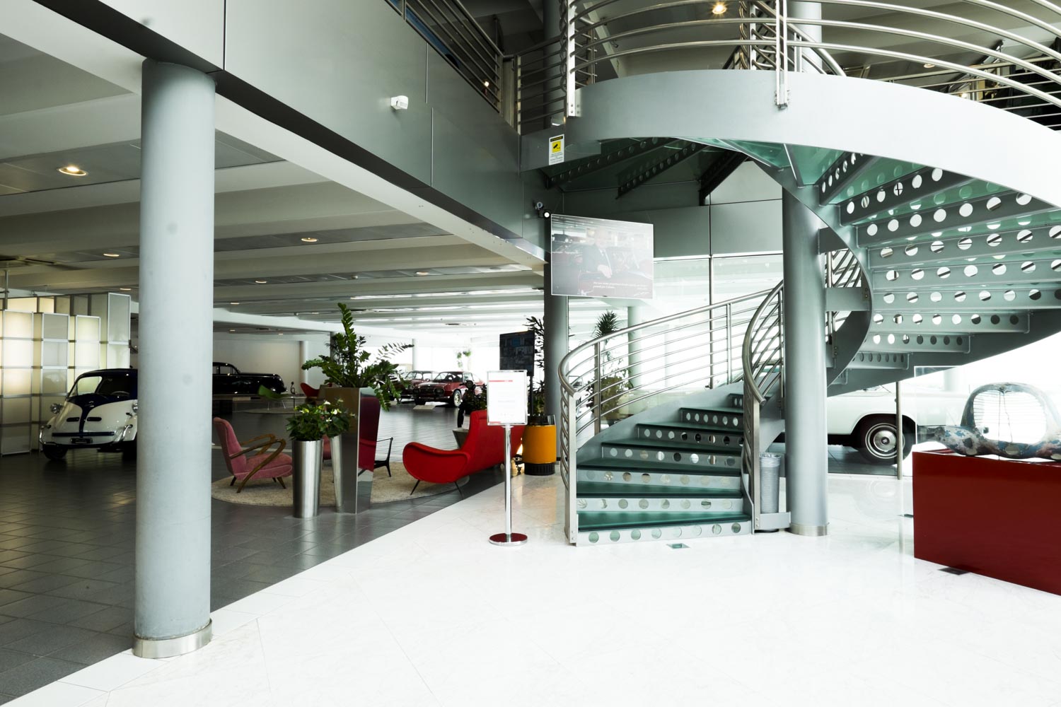 Diese Aufgliederung des Gebäudes und seine Ausrichtung erlauben einen kontinuierlichen Wechsel der Perspektive beim Näherkommen und die Möglichkeit Frontalansichten der Fassaden von verschiedenen Beobachtungspunkten aus zu schaffen. Eine entscheidende visuelle Wirkung wird ferner durch eine große überdachte Galerie hervorgerufen, die den Museumseingang für Fußgänger darstellt . Eine beschwingte, leichte Architektur, um die Wunderwerke der Geschichte des Automobils zu hüten.
