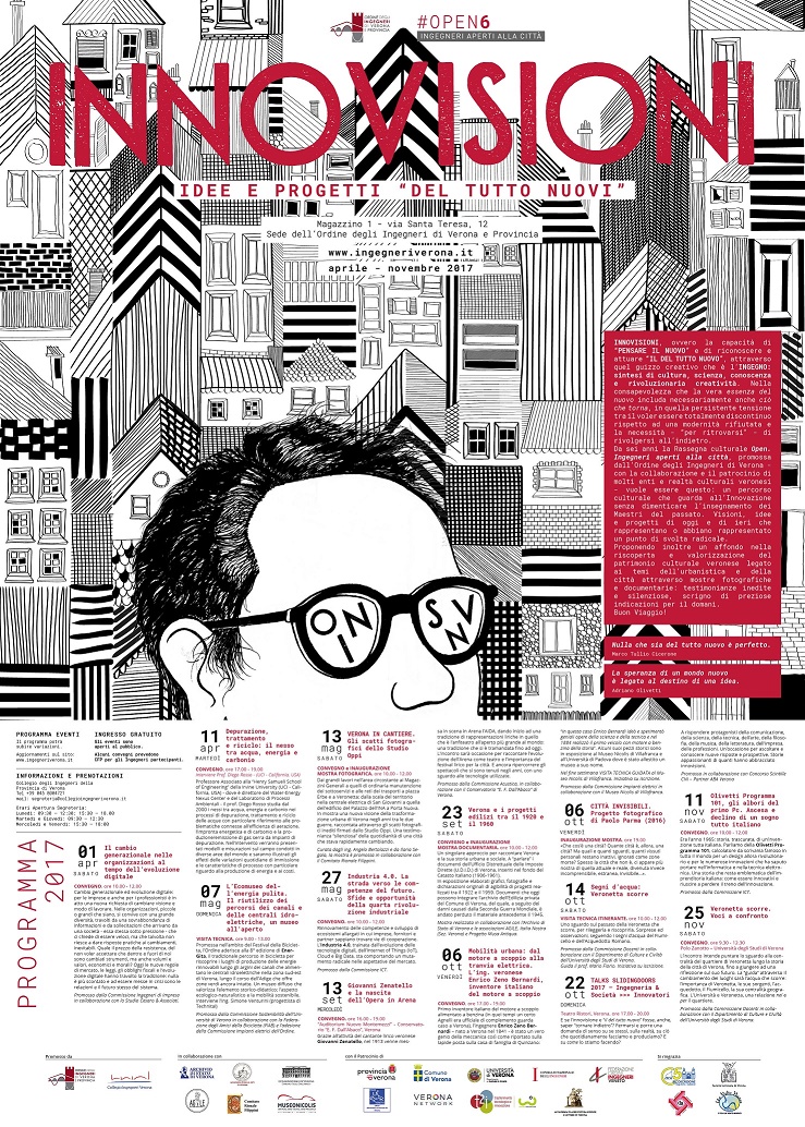 “INNOVISIONI. Idee e progetti del tutto nuovi”: la rassegna culturale aperta al pubblico che intende raccontare, in particolare, la capacità di “pensare il nuovo” e riconoscere “il del tutto nuovo”, attraverso quel guizzo creativo che è l’ingegno: sintesi di cultura, scienza, conoscenza e rivoluzionaria creatività.