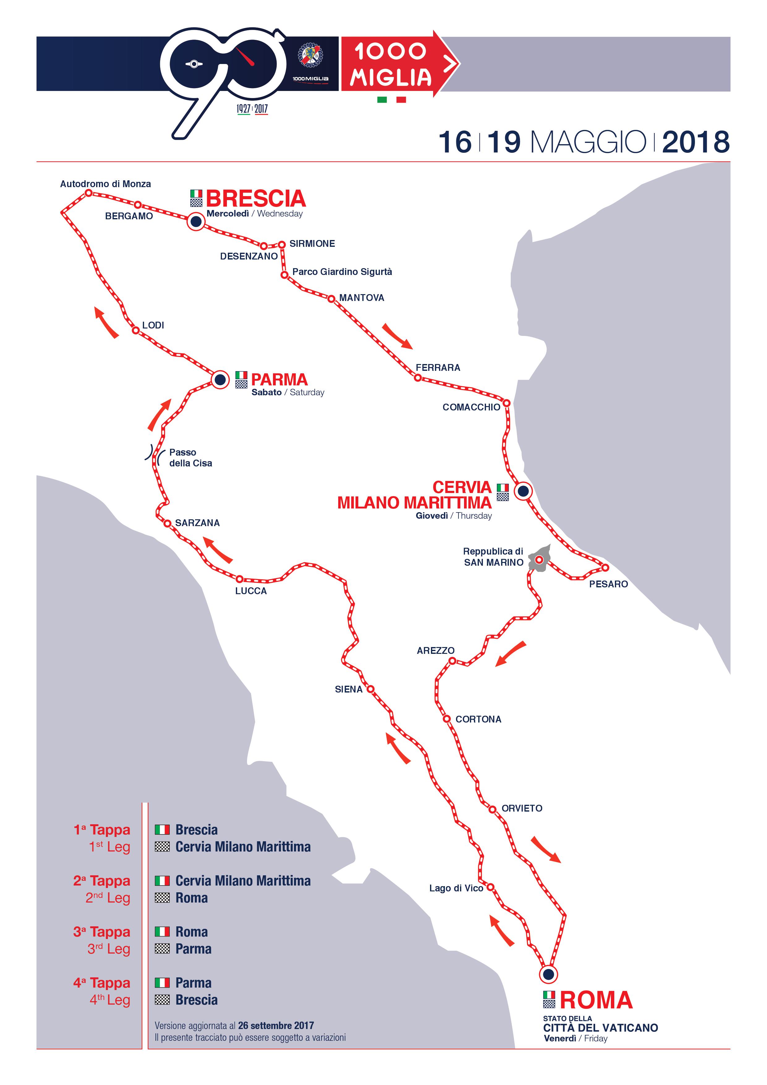 La Mille Miglia da mercoledì 16 a sabato 19 Maggio 2018 attraverserà 7 regioni e più di 200 comuni, da Brescia a Roma e ritorno, toccando anche anche per quest’edizione Valeggio Sul Mincio, durante la tappa iniziale Brescia – Cervia-Milano Marittima.