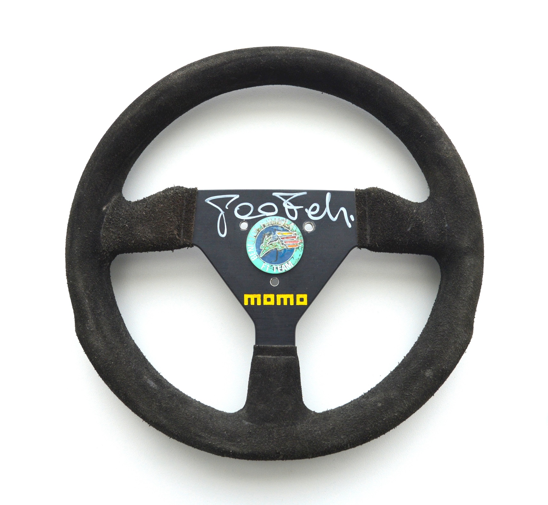 - In der Lenkradkollektion der Formel-1-Champions findet sich auch das Lenkrad das vielseitigen Teo Fabi. Der Fahrer versuchte sich in verschiedene Kategorien, bevor er sein Debüt in der Königsdisziplin gab. Mit seiner soliden und präzisen Fahrweise wurde der Champion 1986 vom Benetton-Team eingestellt, dem Jahr, in dem er an der Weltmeisterschaft mit dem B186 teilnahm, dem ersten Auto des neu entstandenen Teams. Durch einen ehrenvollen 5. Platz beim Grand Prix von Spanien konnte er zwei Meisterschaftspunkte erzielen.
