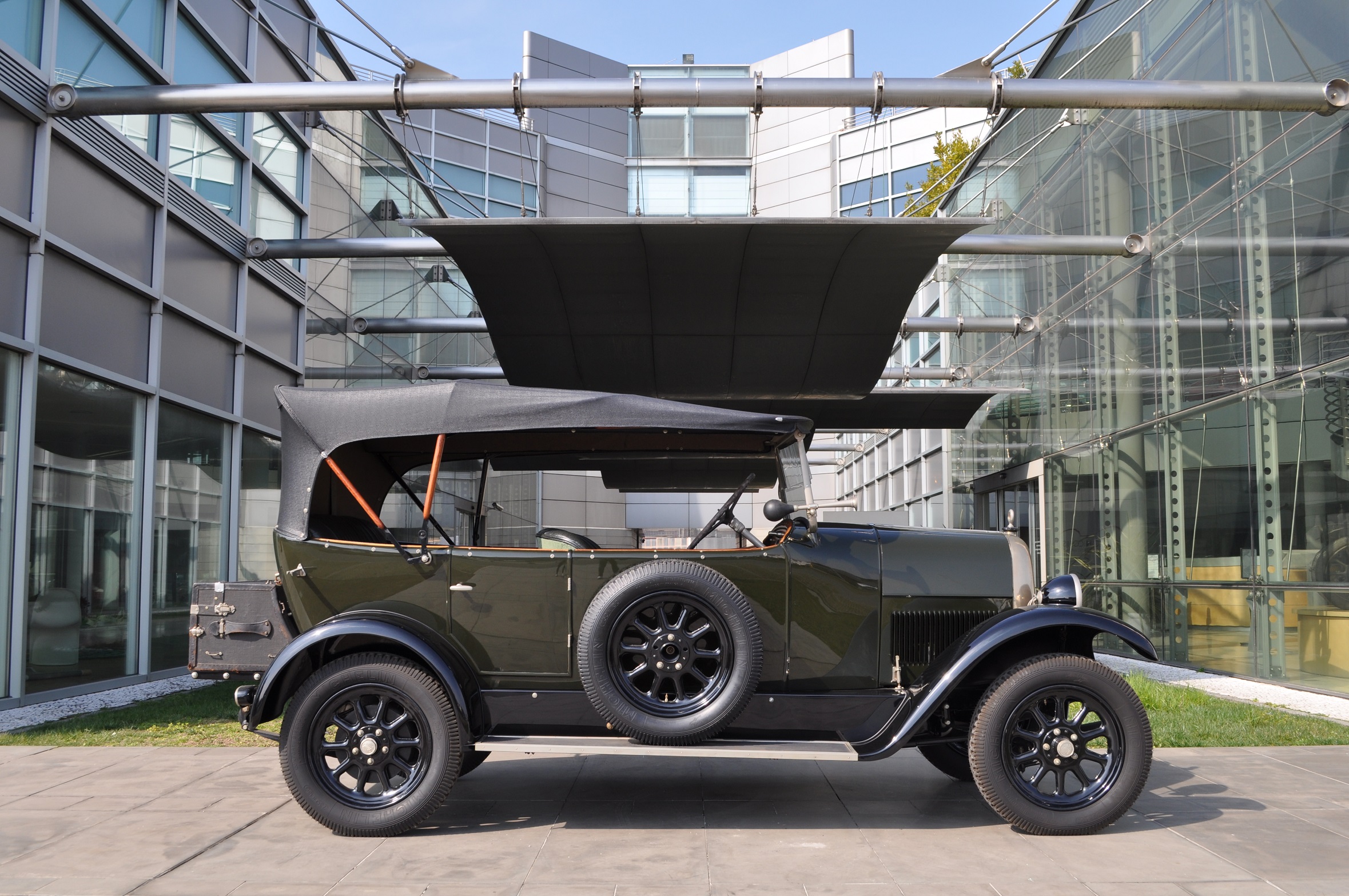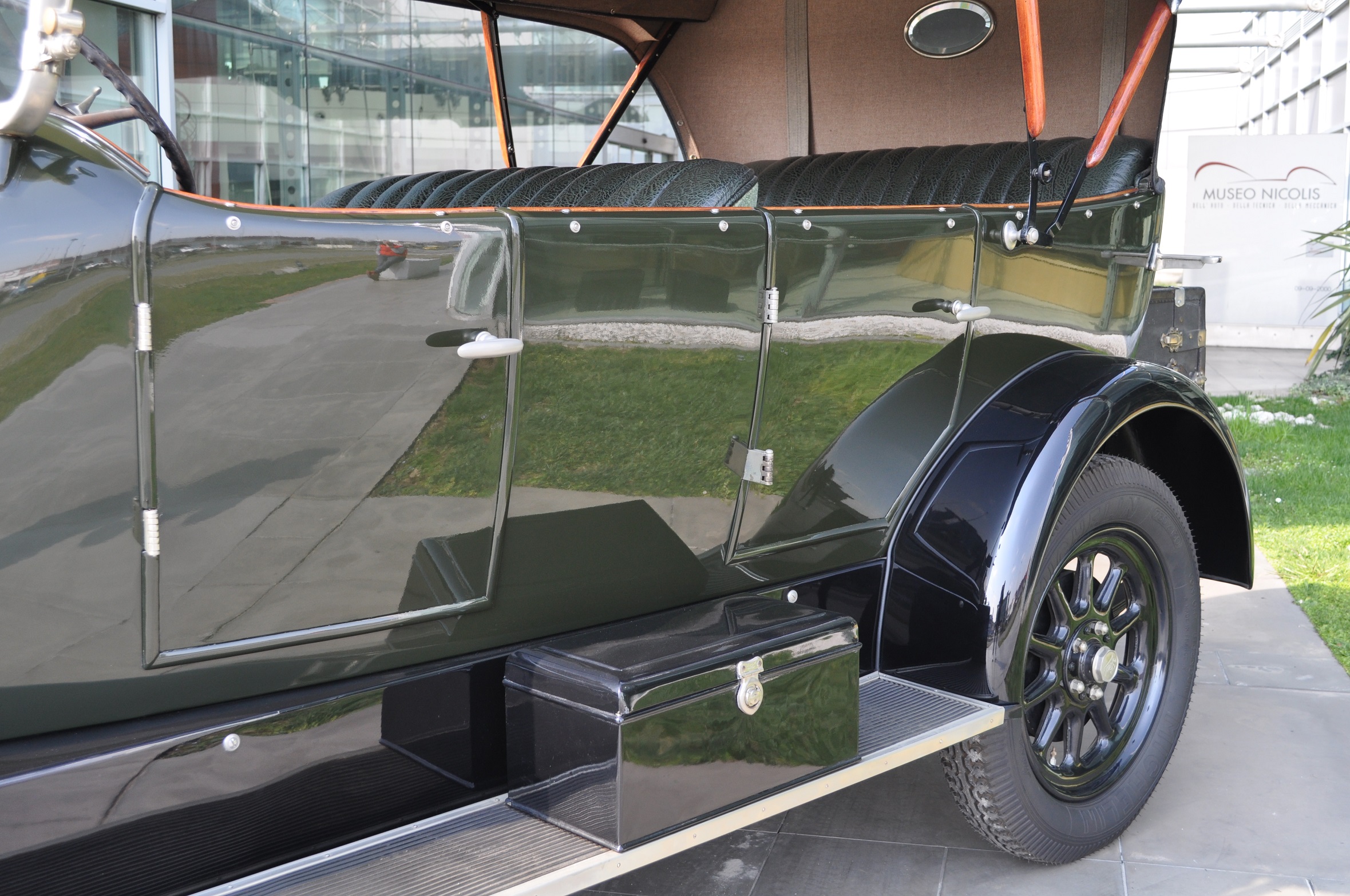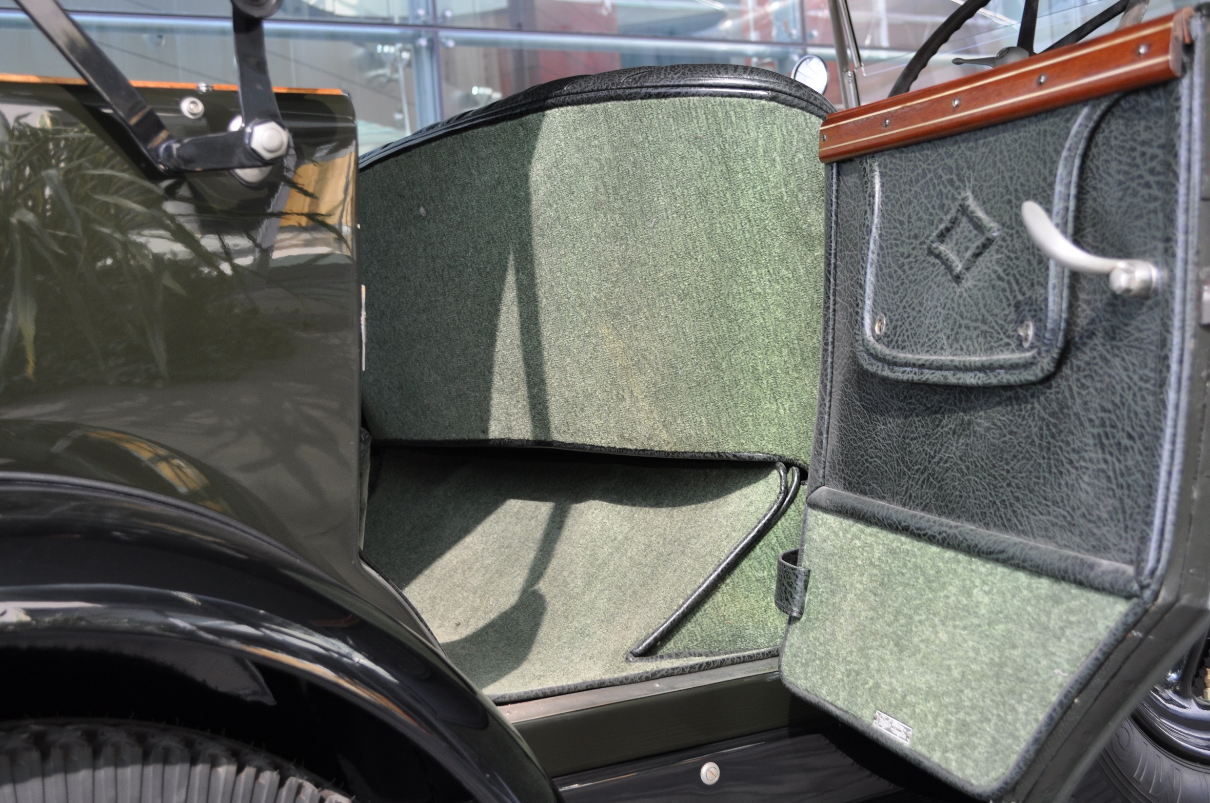 Dieses Fahrzeug, das ein Jahr später als das zweite im Museum ausgestellte Exemplar gebaut wurde, hat eine sog. “All-Wheater”-Ausstattung, die den Insassen des Wagens auch bei schlechtem Wetter und im Winter einen gewissen Komfort gewährleisten sollte.
