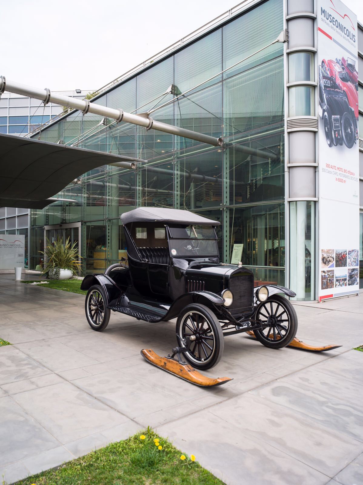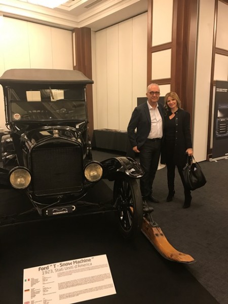 Il tema del design ha trovato una sintesi concreta nella spettacolare Ford “T – Snow Machine” del 1923 esposta nelle sale del convegno. La vettura è forse la migliore dimostrazione della “universalità” della Ford T; in produzione dal 1908 al 1926, la si poteva realmente ordinare con gli accessori e le caratteristiche che più servivano all’acquirente. Questo è uno dei primi esemplari di autovettura in grado di procedere con sicurezza anche sulla neve sostituendo, in pochi minuti e con l’aiuto di pochi attrezzi, le ruote anteriori con due sci. Durante i 19 anni di produzione della “T” (oltre 15 milioni di esemplari realizzati) furono messi in catalogo non meno di 5.000 tipi diversi di accessori: da quelli per il motore (differenti sistemi di accensione, diversi tipi di carburatore) a quelli per gli altri organi meccanici (sospensioni più o meno confortevoli, coperture in pelle o tela per il radiatore) a quelli per il comfort dei passeggeri (differenti materiali per gli interni, diversi tipi di riscaldamento).
