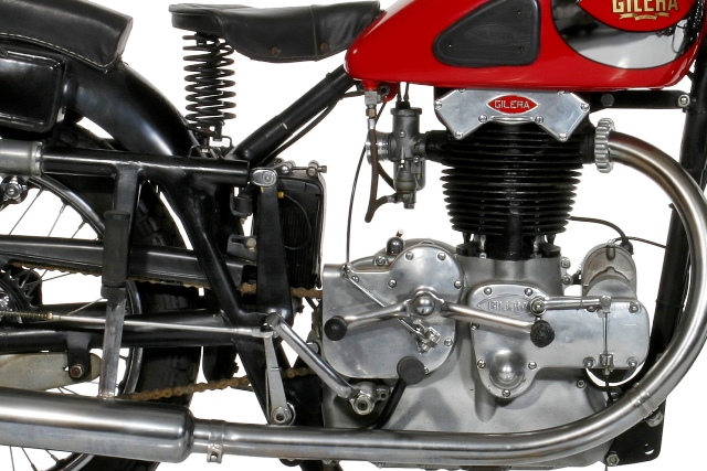 Der Motor ist ein traditioneller Schubstangen-Einzylinder-Gilera-Motor mit 500 ccm Hubraum und einer "klassischen" 500 ccm Gilera-Bohrung und einem Hub von 84 × 90 mm.