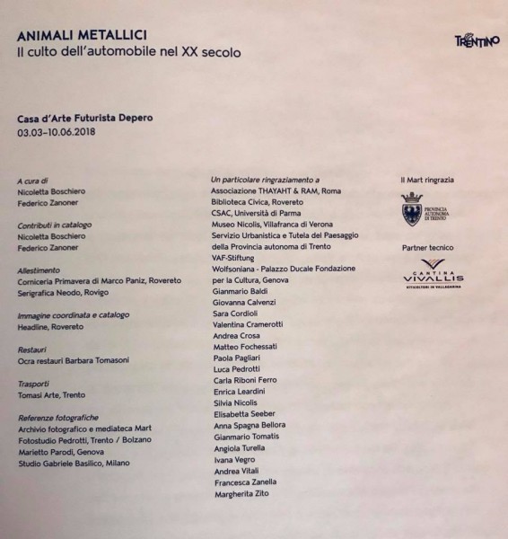 Verona, 07 März 2018. Casa d’Arte Futurista Depero von Rovereto eröffnet die Ausstellung „Metallic Beasts. Der Automobilkult des 20. Jahrhunderts “, kuratiert von Nicoletta Boschiero und Federico Zanoner.