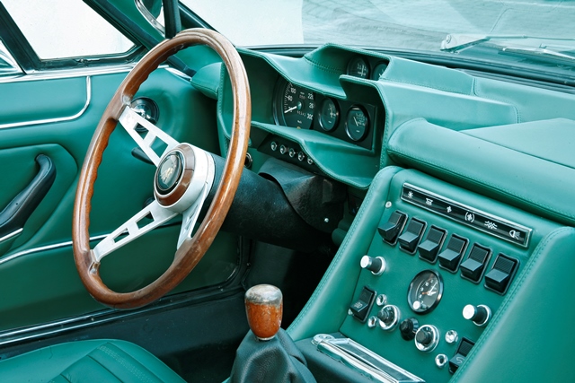 Er wurde von Marcello Gandini für Bertone entworfen und beeindruckte sofort durch seine straffen, aerodynamischen und futuristischen Linien: eine markante stilistische Antwort auf die großen Gran Turismo Coupés der Zeit, wie den Maserati Mexico und den Ferrari 365 GT 2+2.