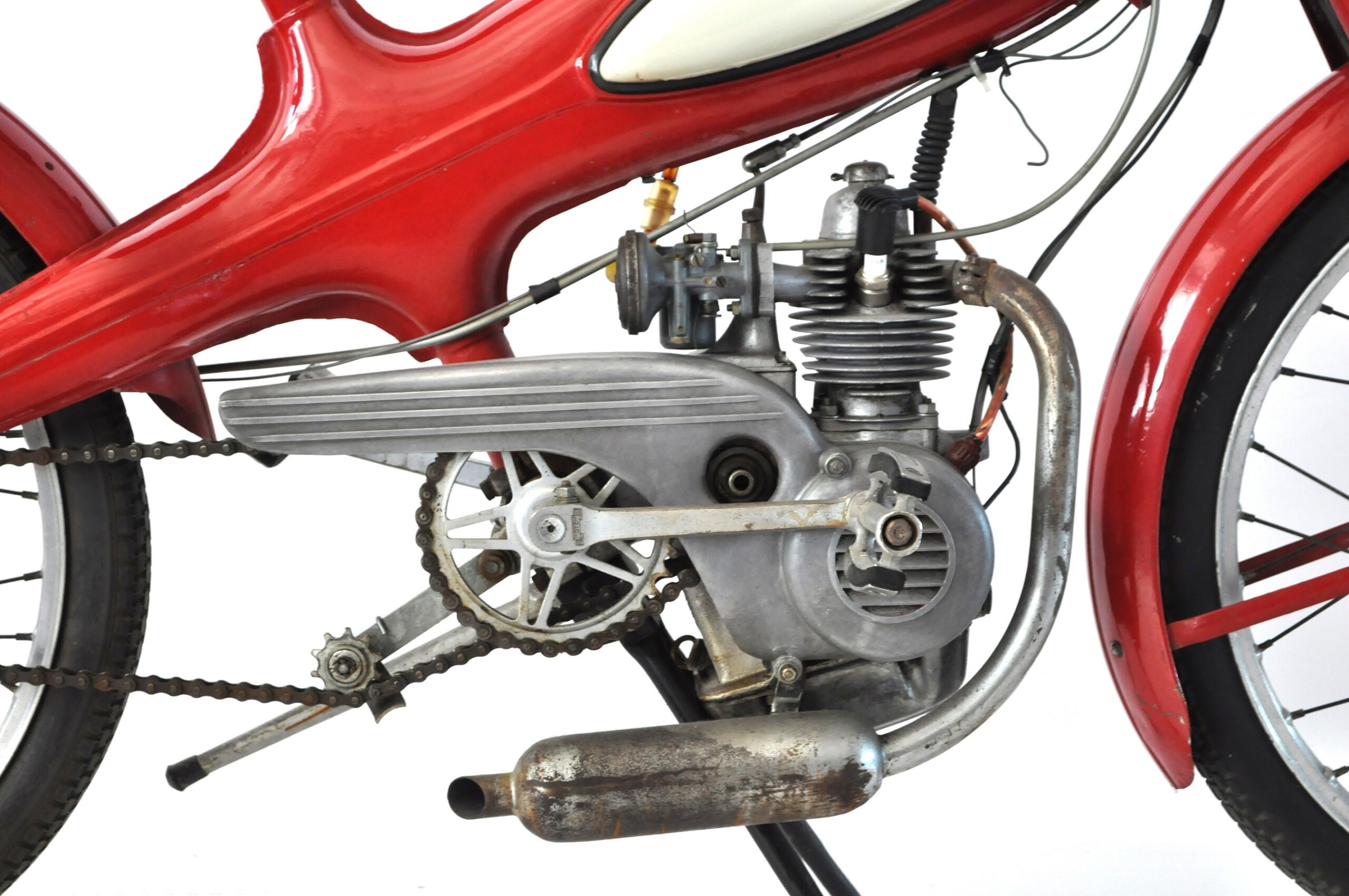 Ab dem 12 / D-Modell von 1951 wird der Rahmen aus zwei Hälften bestehen, die vertikal und nicht mehr horizontal geschnitten sind, während das Sportmodell von 1955 einen anderen Kraftstofftank als Ersatz für die „Badeseife“ einführte, das benötigte Loch schloss und gab der Rahmen mehr Stärke