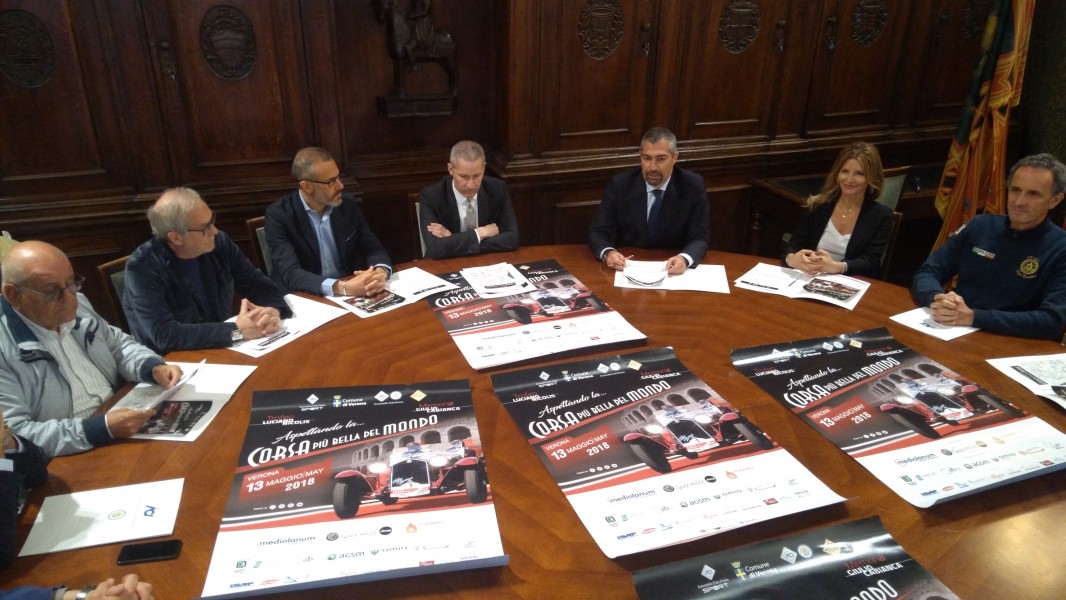 Si è svolta questa mattina, nella Sala Arazzi del Comune di Verona, la Conferenza Stampa di presentazione della gara di regolarità classica per auto d’epoca “Aspettando La Corsa più Bella del Mondo” organizzata dall‘Automobile Club Verona con la collaborazione del Comune di Verona e di ACI Verona Sport e il supporto di Banca Mediolanum, Concessionaria F.lli Girelli di Sona e Campi Antincendi.