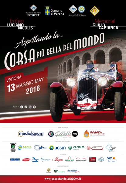 La quarta edizione di Aspettando la Corsa più Bella del Mondo, partirà con un bel successo di iscritti, 63 stupende vetture partecipanti che domenica 13 maggio saranno protagoniste di un evento che potrebbe definirsi “antipasto” alla Mille Miglia 2018. I numeri sono raddoppiati rispetto all’edizione dello scorso anno, a fronte di un impegno organizzativo supportato anche dalle partecipate del Comune di Verona AGSM, AMIA, ATV e patrocinato da Camera di Commercio, Serit, Consorzio ZAI e Consorzio Verona 2.