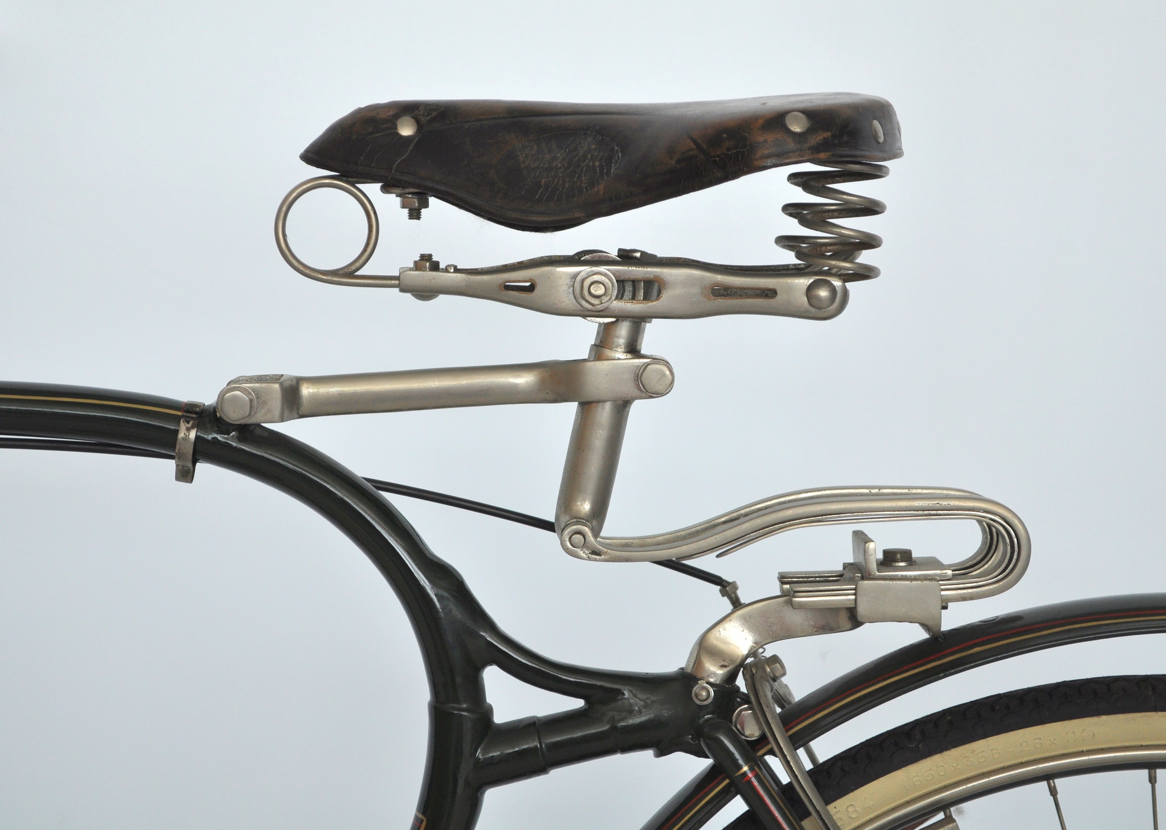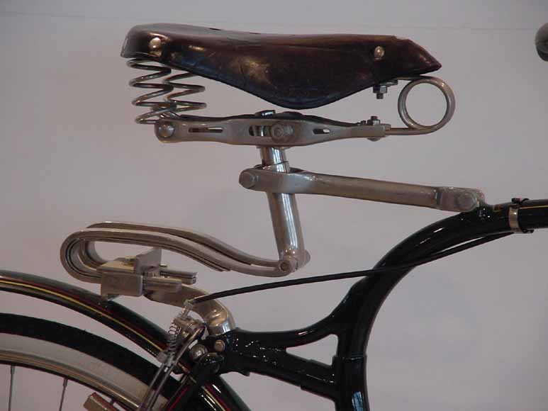 Spezielles Fahrrad, das wahrscheinlich in begrenzter Stückzahl gebaut wurde, um neue Wege zu finden, um die Fahrt komfortabler zu machen.
