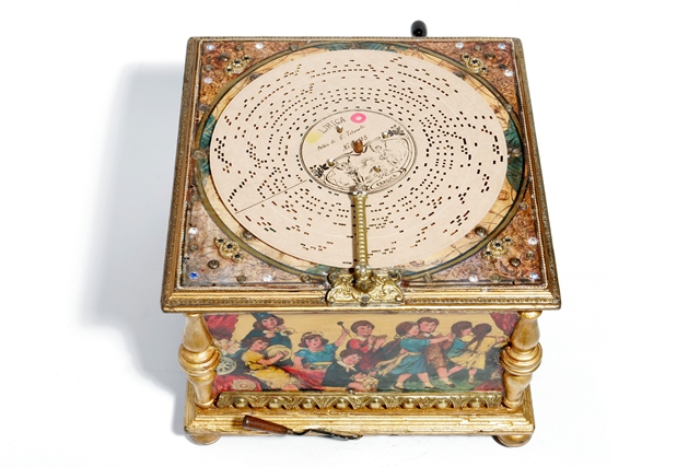 Spieldose Ariston mit Lochscheibe aus Karton - Ende 19. Jahrhundert
