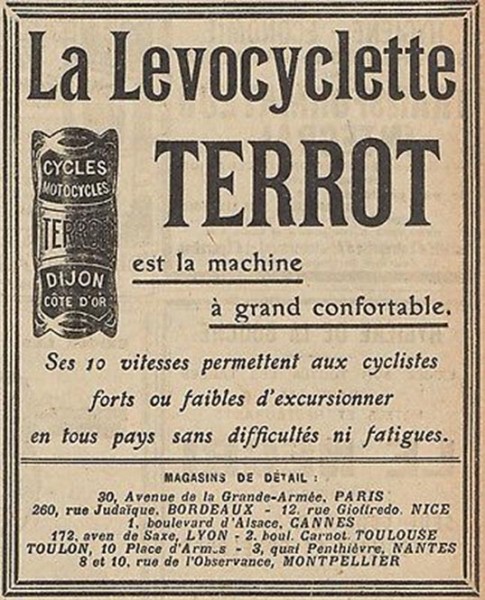 1905, tourenrad, Terrot, Levocyclette, Frankreich.
