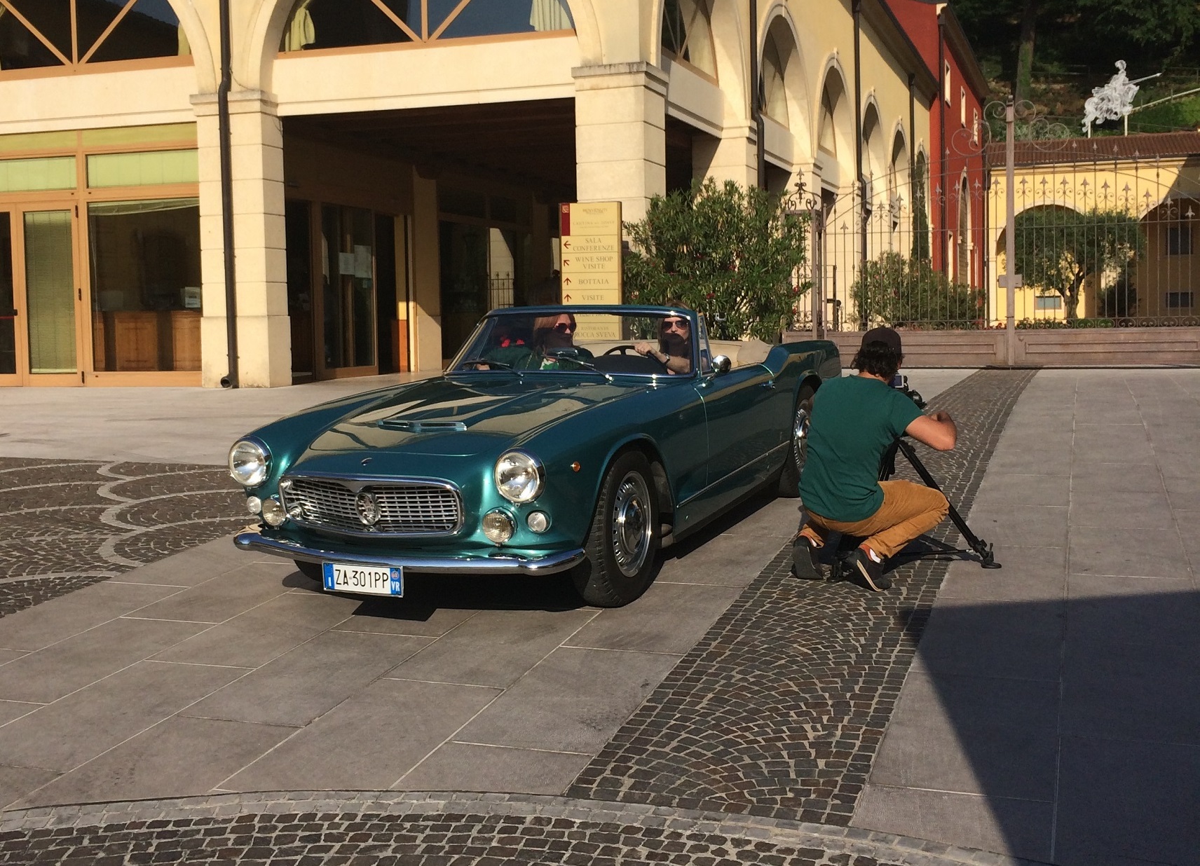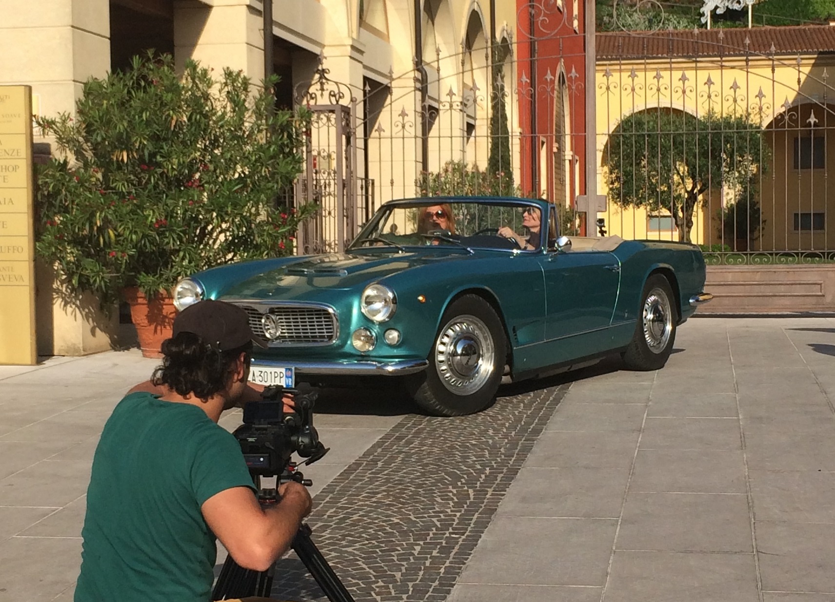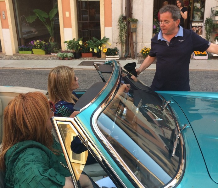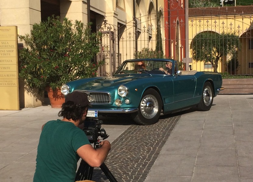 Silvia Nicolis an Bord des wunderschönen 1960 Maserati 3500 spider Vignale, um die Länder von Soave zu entdecken.