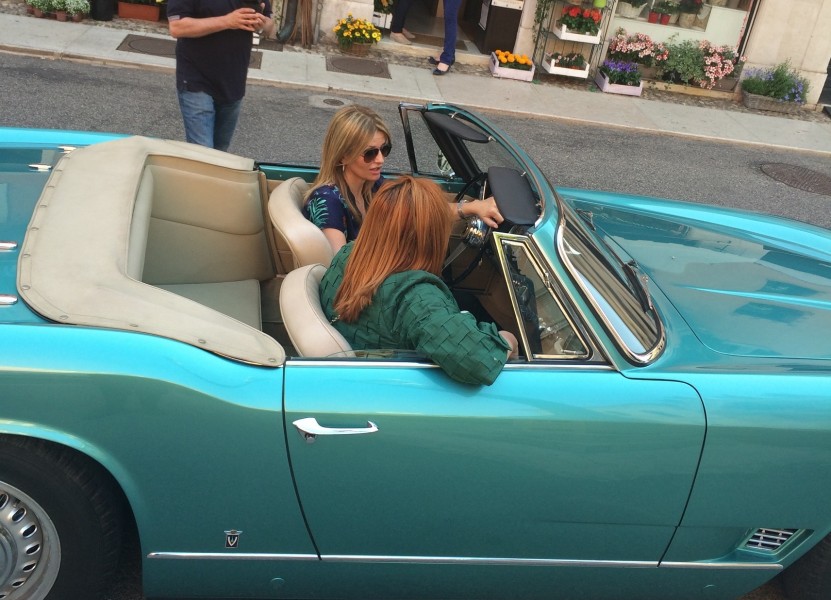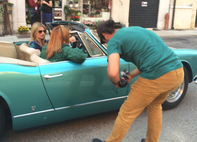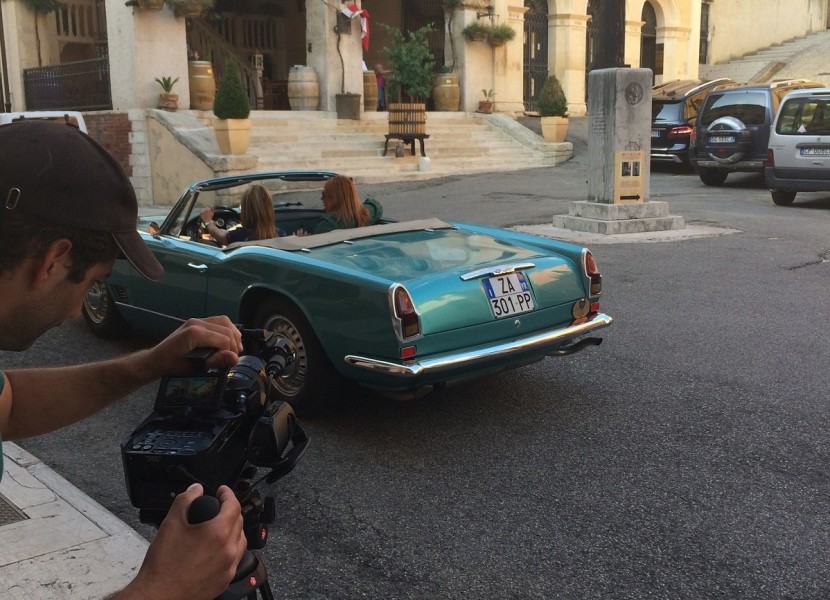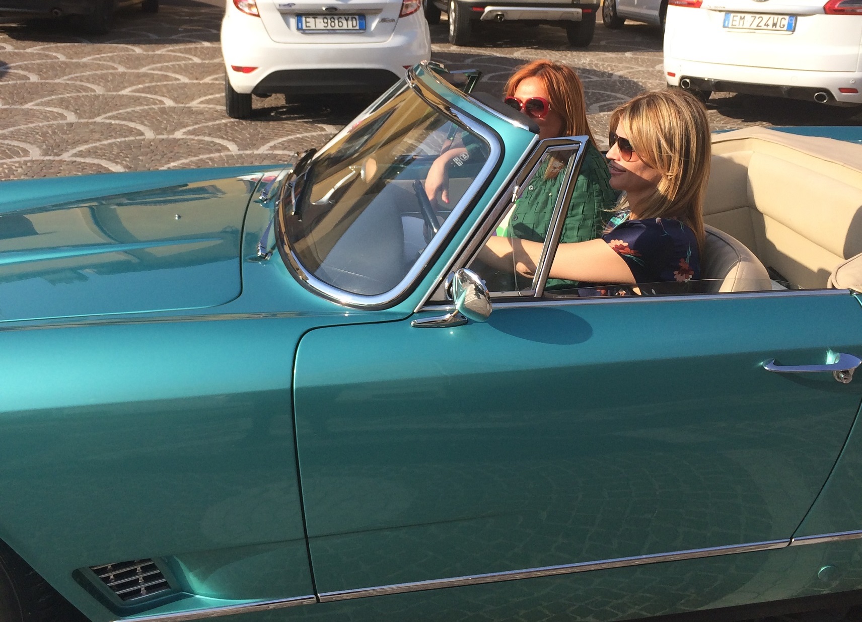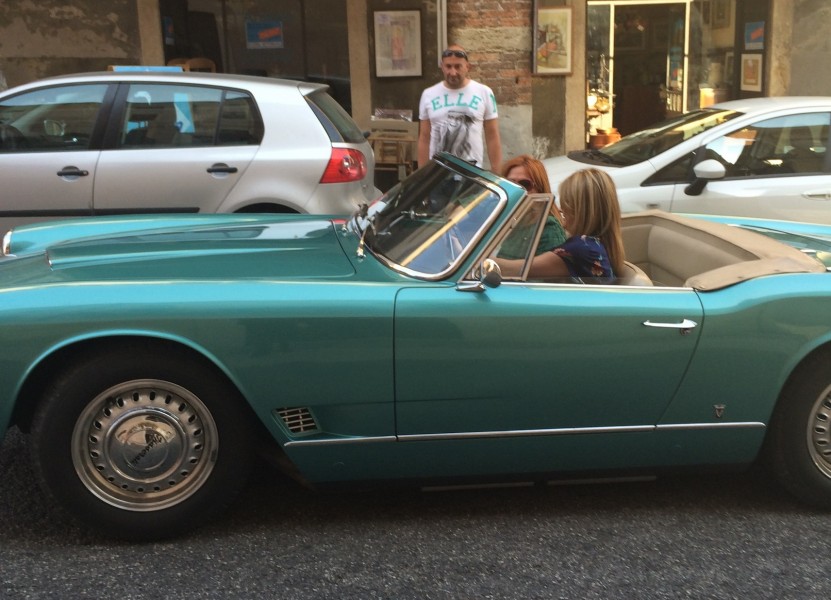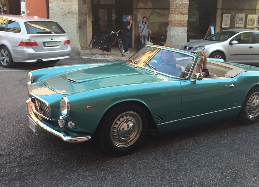 Silvia Nicolis an Bord des wunderschönen 1960 Maserati 3500 spider Vignale, um die Länder von Soave zu entdecken.