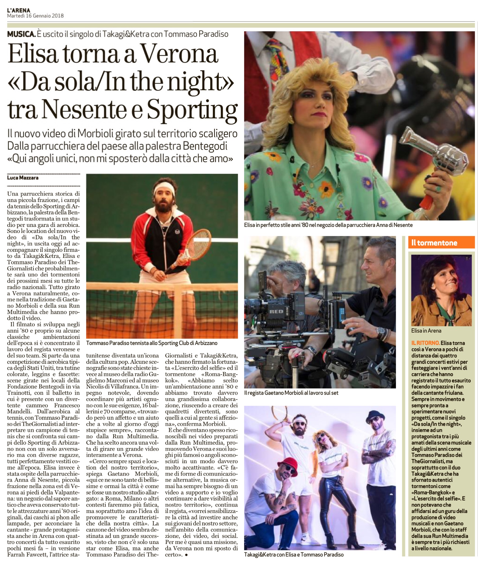 Nell’ultimo video di Takagi & Ketra dal titolo “Da sola / In the night” ci sono Elisa, Tommaso Paradiso ma e anche Francesco Mandelli. Ambientato negli anni ’80, grazie alla sapiente regia di Gaetano Morbioli e della sua Run Multimedia, è un’esplosione di colori, leggins, scaldamuscoli, fascette, sonorità e suggestioni tipiche di quest’epoca che si snodano tra una competizione aerobica e una partita di tennis.