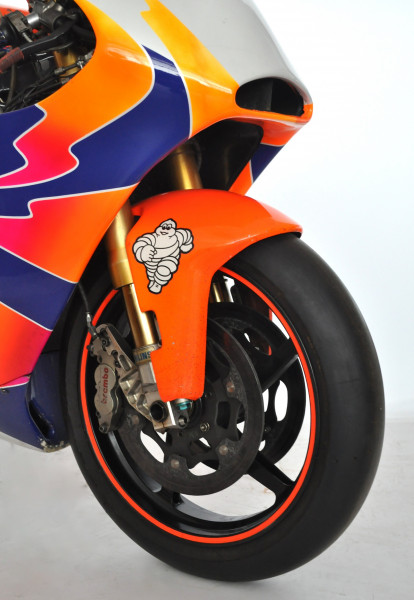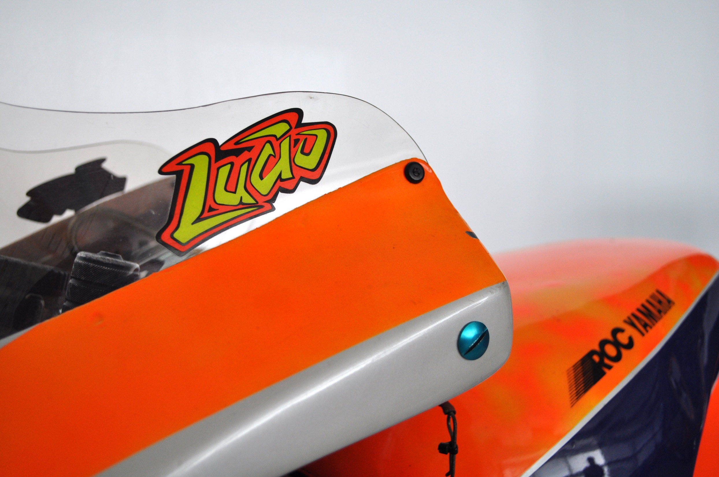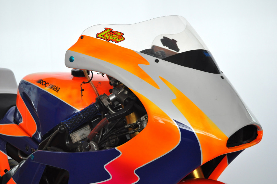 Die im Museo ausgestellte Yamaha ROC ist die letzte 500-ccm-Zweitaktmaschine, die Lucio in der MotoGP-Meisterschaft gefahren hat. Es zeigt immer noch das Etikett, das von den Rennrichtern bei der technischen Kontrolle des letzten Rennens vergeben wurde: dem GP von Australien 1997.