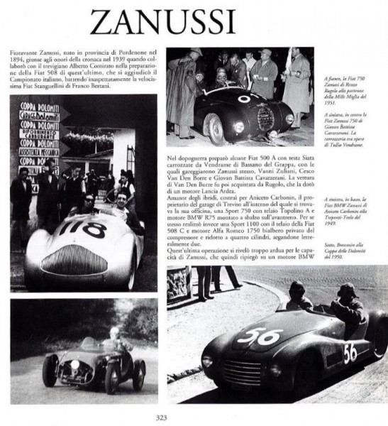 Octane Magazine, 2022 von Massimo Delbò - „...Fioravante Zanussi wurde im Juni 1894 in Pasiano di Pordenone, im Nordosten Italiens, als erstes von neun Kindern geboren und zeigte von klein auf eine tiefe Liebe für alles Mechanische. Er war nicht der Einzige, denn auch vier seiner Brüder arbeiteten später mit Autos. Bereits mit 16 Jahren arbeitete er in Turin bei der Anonima Aquila Italiana, einem Unternehmen, das Autos und Motoren unter dem Markennamen Aquila herstellte, und wechselte kurz darauf zu der viel größeren und etablierteren S.C.A.T. (Società Ceirano Automobili Torino), wo er in der Rennabteilung eingesetzt wurde. Es ist nun wichtig, sich an einen Aspekt zu erinnern, der oft vergessen wird: In den ersten Jahren des 20. Jahrhunderts waren die Ceirano-Brüder die wichtigsten geistigen und innovativen Kräfte in der wachsenden italienischen Automobilszene, und ihr Beitrag zur Entwicklung der italienischen Automobile jener Zeit ist unermesslich. S.C.A.T. gewann die Targa Florio in den Jahren 1911, 1912 und 1914 und Tazio Nuvolari selbst vertrieb vor dem Ersten Weltkrieg ihre Autos in der Region Venetien. Der junge Fioravante, leidenschaftlich, talentiert und willensstark, fand den richtigen Nährboden für seine Kenntnisse und Erfahrungen. Im Jahr 1914 wurde er bei FIAT als Spezialist in der Motorenprüfstelle eingestellt, aber kurz darauf trat Italien in den Ersten Weltkrieg ein und er wurde als Motorradstaffel eingezogen...“