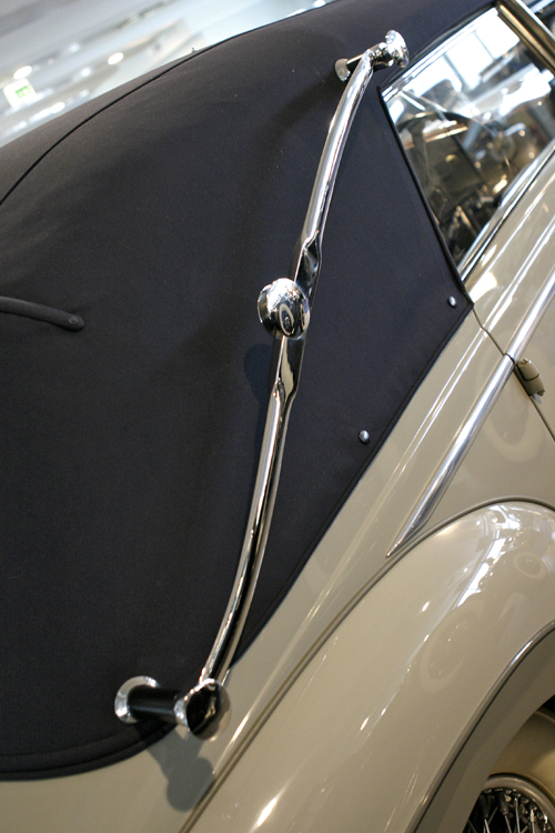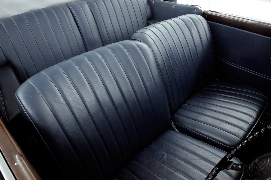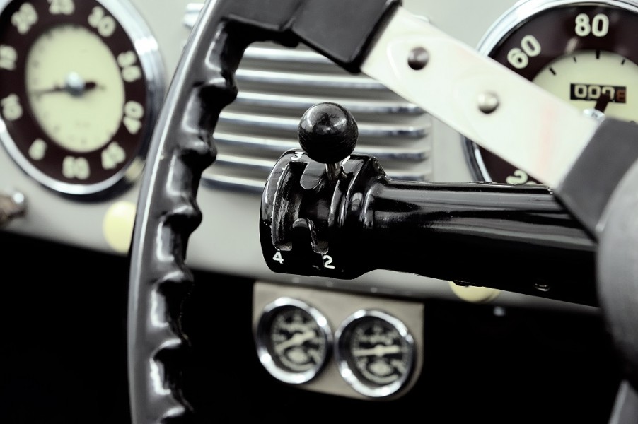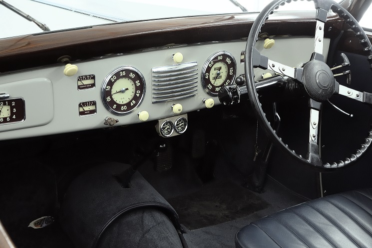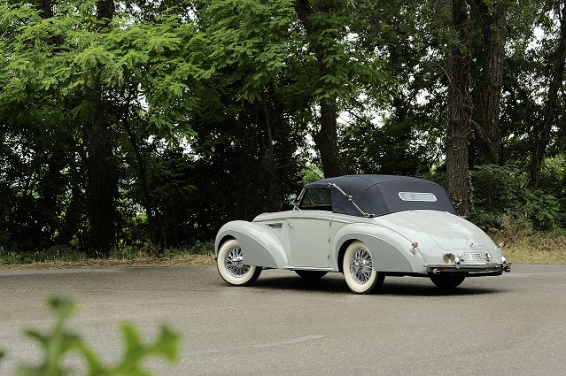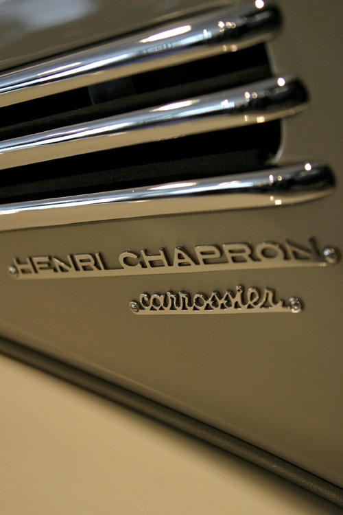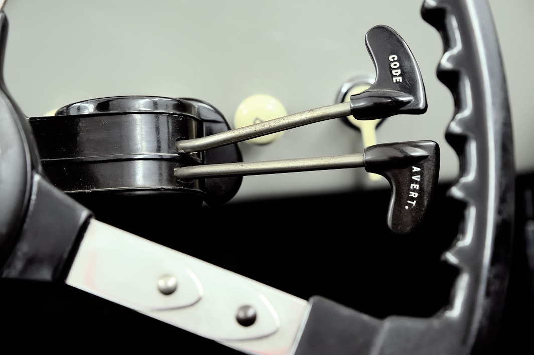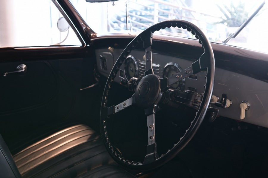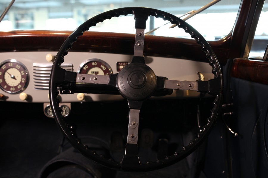 L’esemplare del Museo è opera della prestigiosa Carrozzeria Henri Chapron, celebre per la cura artigianale e per l’eleganza senza tempo delle sue realizzazioni. Tra i dettagli più notevoli figura la capote regolabile, utilizzabile sia completamente aperta o chiusa, sia in configurazione “à la milord”: una particolare chiusura parziale, pensata per proteggere i passeggeri posteriori lasciando scoperta la parte anteriore dell’abitacolo, soluzione tipicamente aristocratica. La vettura è equipaggiata con il sofisticato cambio elettromagnetico Cotal, una tecnologia all’avanguardia per l’epoca: dotato di quattro marce avanti e addirittura quattro retromarce, rappresenta una sorta di antenato dei moderni cambi a selezione elettroattuata. Degna di nota anche la particolare conformazione elastica delle razze del volante, concepita per migliorare il comfort di guida.