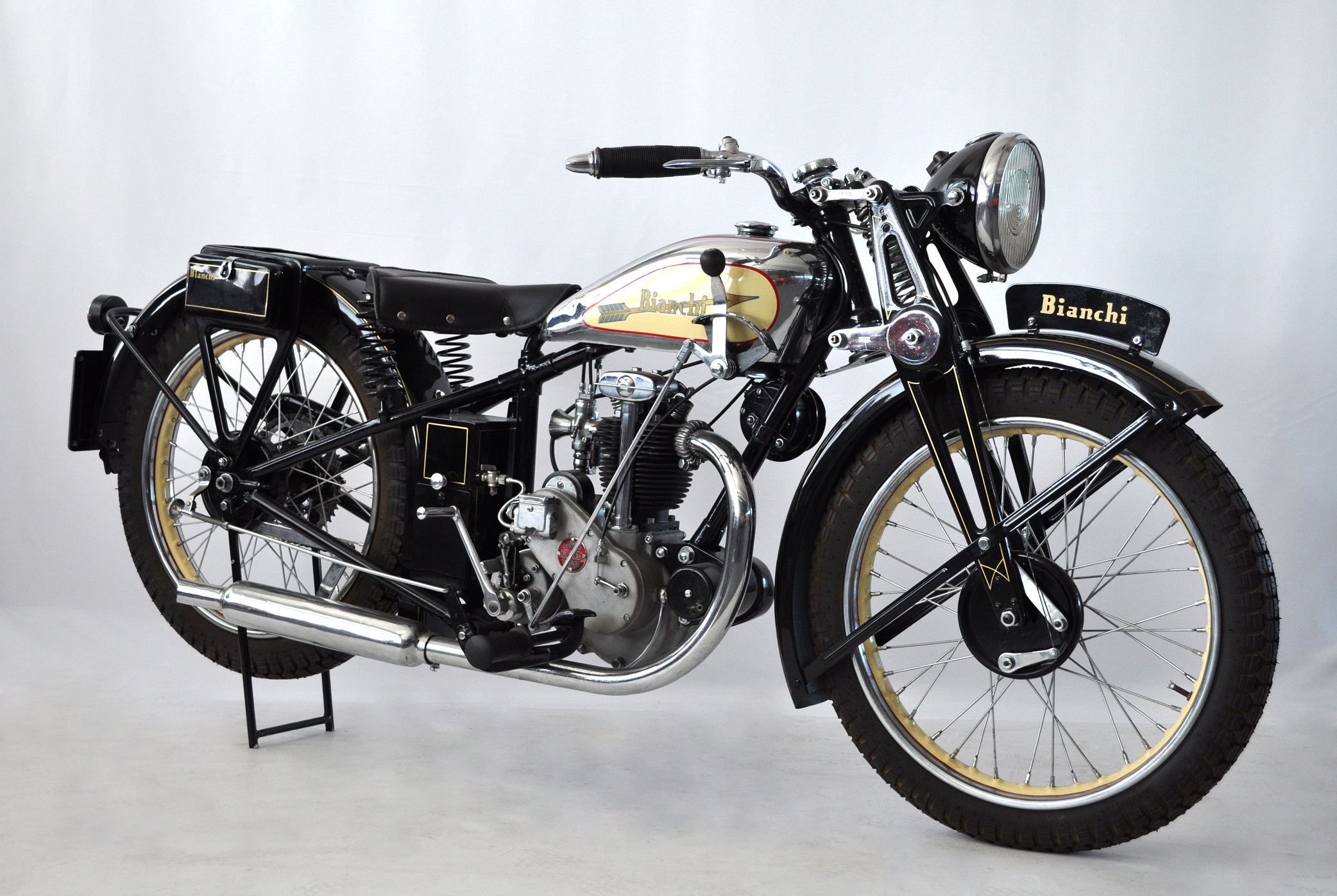 An elegant design, a careful attention to details, a nice quality-price ratio and low fuel consumption made the “Freccia Oro” very popular and Bianchi became the first Italian producer for light motorcycles.